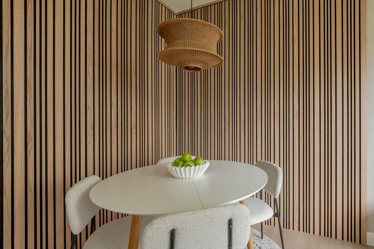 * Woonkamer voorzijn van PVC-vloer en stijlvolle wand- en plafond afwerking.