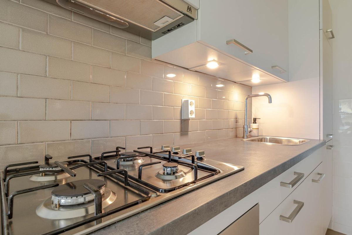 * Keuken aan de achterzijde met een goed uitziende inbouwkeuken uit 2020 met verschillende apparatuur: gaskookplaat, combimagnetron (2025; nog niet gebruikt), koel-vriescombinatie (2023) en vlakscherm afzuigkap. Op de vloer ligt een PVC-vloeren vanuit de keuken is er ook toegang tot het balkon aan de achterzijde, gelegen op het oosten.