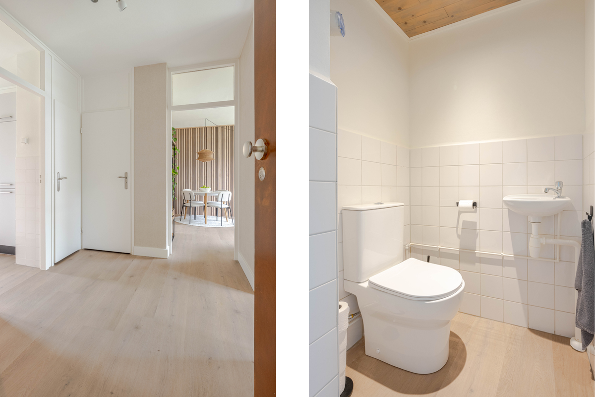 * Woningentree; hal voorzien van PVC-vloer, meterkast (vernieuwd in 2024), vaste kast en toegang tot de verschillende vertrekken.