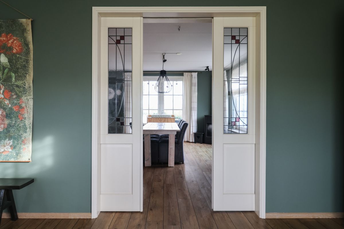 Via de trap in de hal bereik je de eerste verdieping. Hier bevinden zich drie ruime slaapkamers (eenvoudig te verbouwen naar 5). De grootste slaapkamers is uitermate geschikt voor een kantoor aan huisfunctie of sportkamer. De grote hoeveelheid ramen biedt veel lichtinval en een prachtig uitzicht over de omliggende weilanden. De woning beschikt over twee badkamers. Deze volledig geïsoleerde woning met een combi warmtepomp (verwarmen en koelen), is toekomstbestendig en van alle gemakken voorzien.