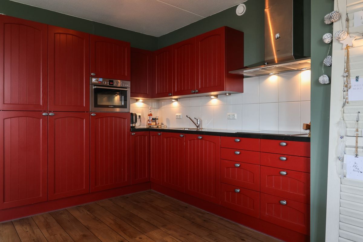 De keuken, voorzien van een duurzaam stenen werkblad, is praktisch en ruim opgezet. De combinatie van moderne apparatuur en een ruim werkoppervlak maakt het een ideale plek voor iedere kookliefhebber.