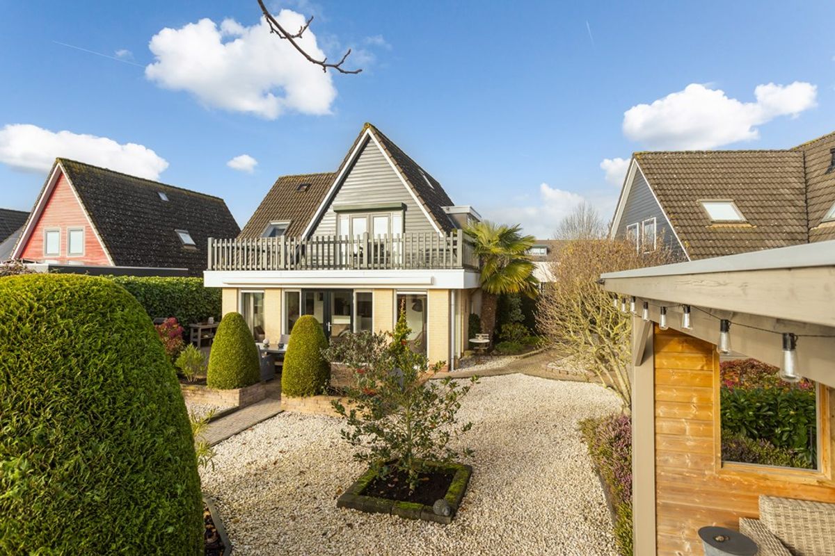 Wanneer je door de straat rijdt, dan valt het niet op, maar wanneer je goed kijkt, dan zie je pas waarin deze woning afwijkt van de andere woningen; Deze woning is (in 2001) op de begane grond maar liefst 3 meter uitgebouwd, daarboven bevindt zich – aansluitend aan de hoofdslaapkamer - een groot en zonnig dakterras.