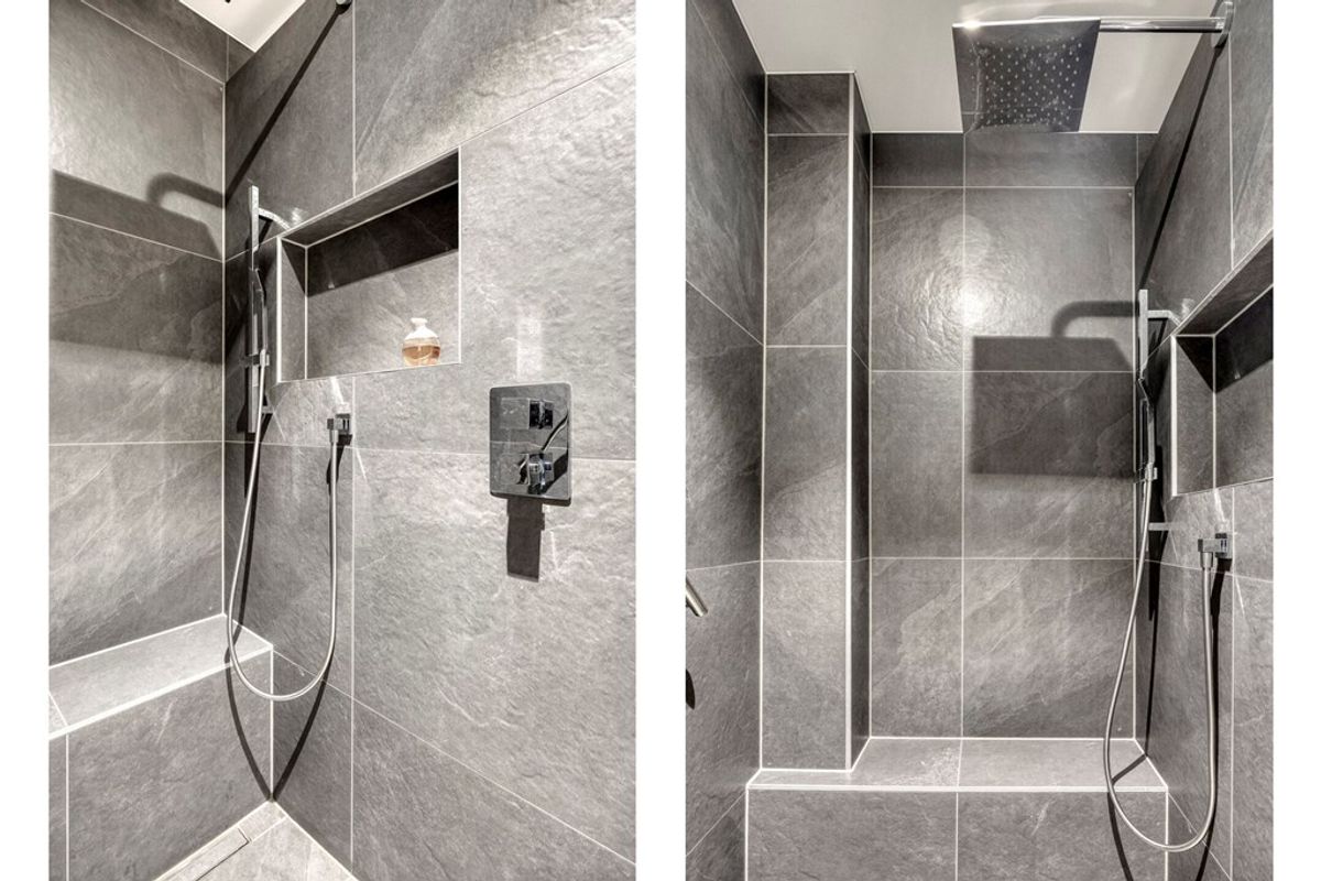 De badkamer is geheel vernieuwd in 2022 en betegeld to het plafond en is voorzien van een ruime inloopdouche, ligbad, toilet en wastafelmeubel.