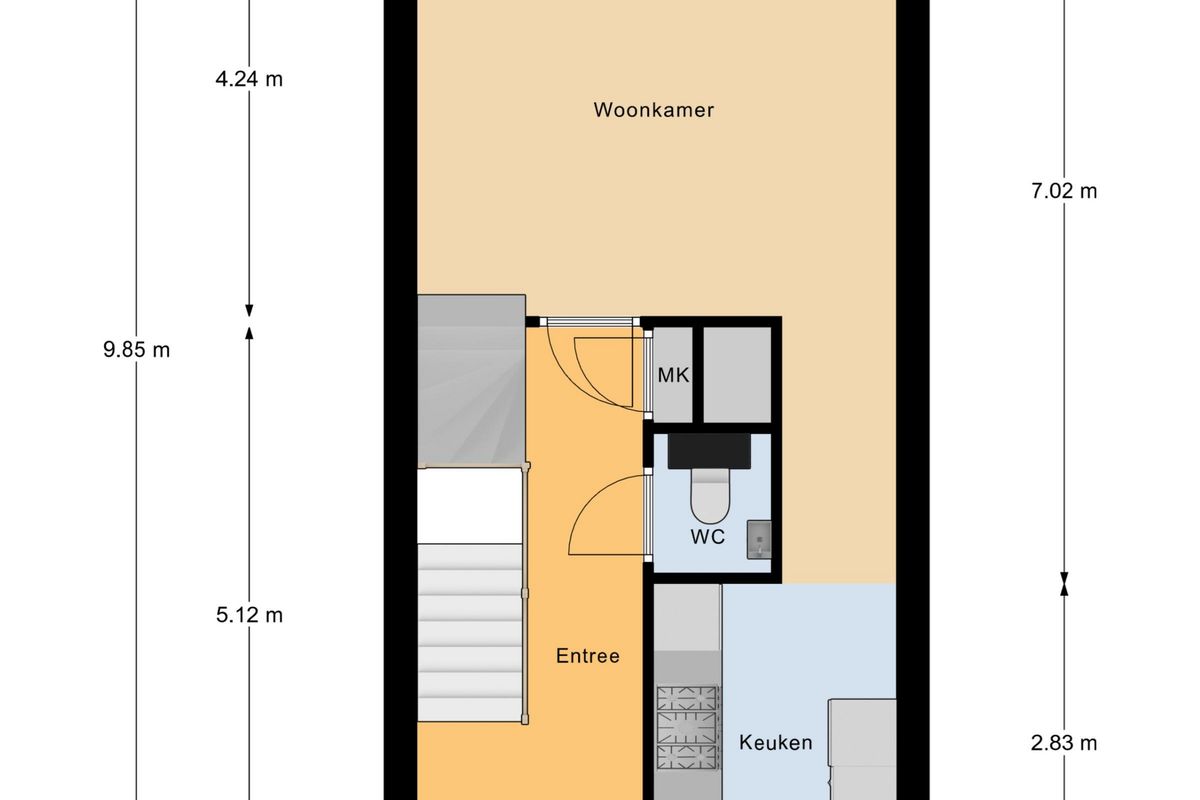 - Keuken: Nette keuken met inbouwapparatuur waaronder oven, 5 pits kookplaat, afzuigkap, koelvries combinatie, vaatwasser en een magnetron. De entree van de keuken is vanuit de woonkamer, waardoor de keuken compacter ingedeeld kan worden. En er is ook een verbinding met de woonkamer hetgeen gezelliger is voor de kok.