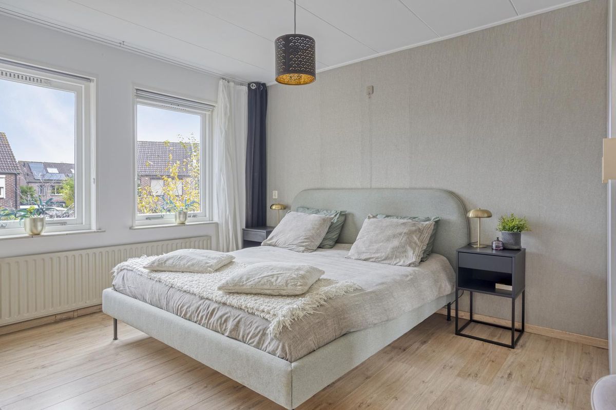 Op de tweede verdieping geeft de overloop toegang tot een royale 4e slaapkamer met vaste kasten achter de knieschotten en gezellige gashaard. Ideaal als hobby-/werkkamer, maar ook een droom slaapkamer voor elke tiener, die hier een eigen ruimte en privacy heeft.