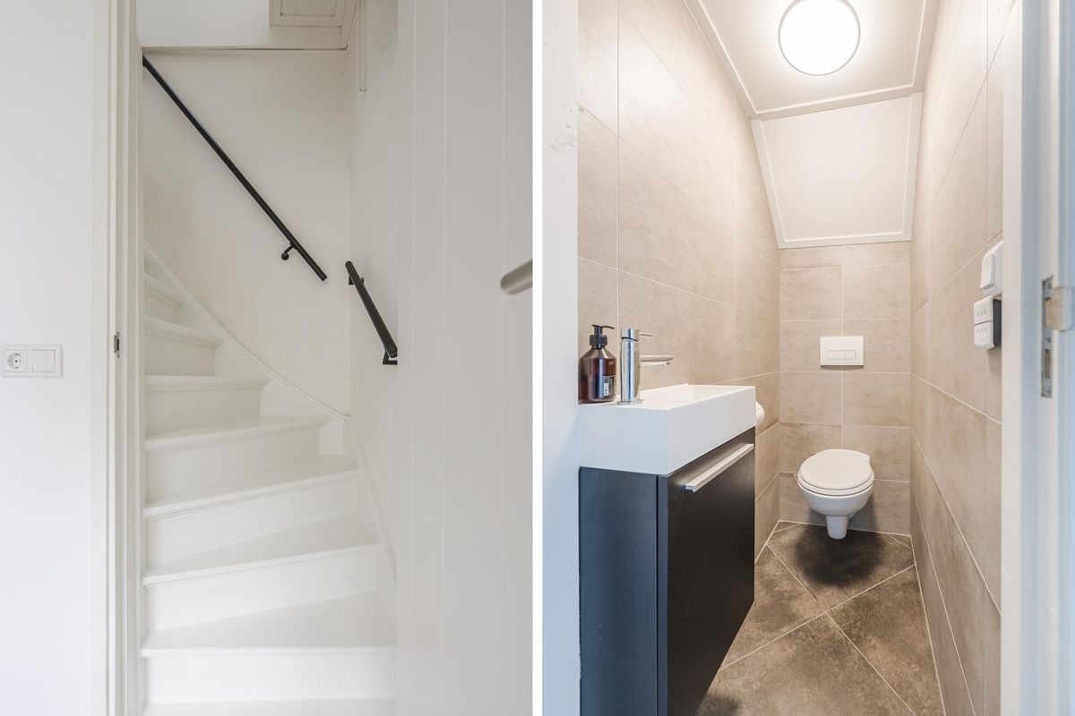 Op de 1e verdieping is een 2e toilet met tegelvloer en fonteintje.
