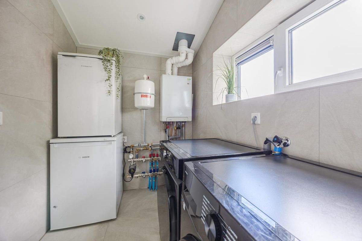 Via de hal komt u in de praktische bijkeuken met tegelvloer. Deze is voorzien van aansluitingen voor wasmachine en droger en hier bevindt zich de cv installatie.