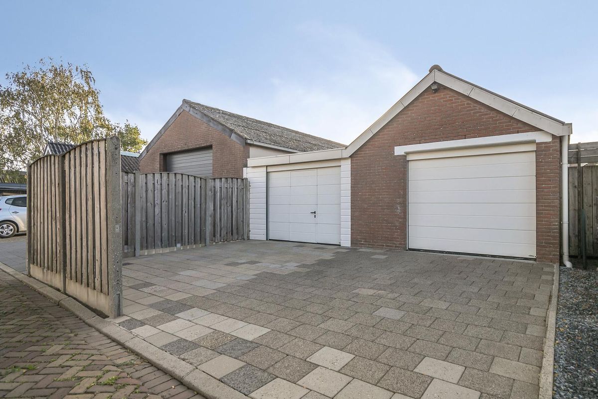 Achterin de tuin bevindt zich een grote garage, met daarnaast een carport en een separate berging. De garage is voorzien van een betonvloer, elektra en een elektrisch bedienbare paneeldeur. Boven de garage is een praktische bergzolder. De diepe (9,71 m) carport naast de garage is eveneens goed doordacht: voorzien van een elektrisch bedienbare paneeldeur aan de straatzijde en een kanteldeur aan de tuinzijde.