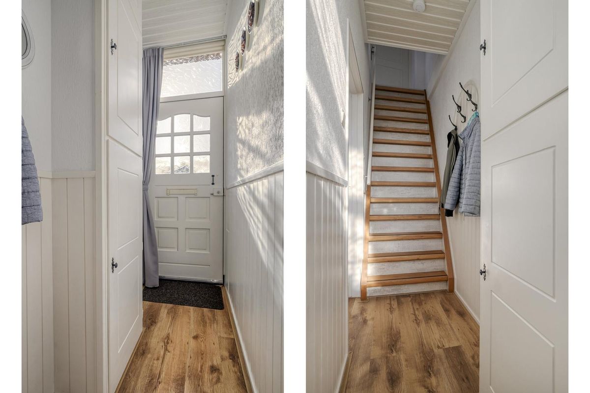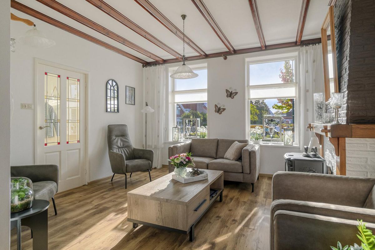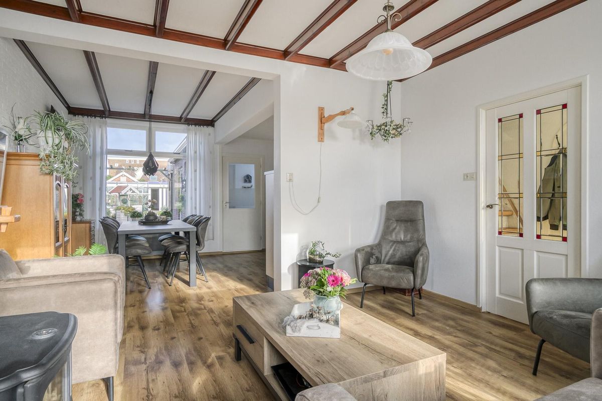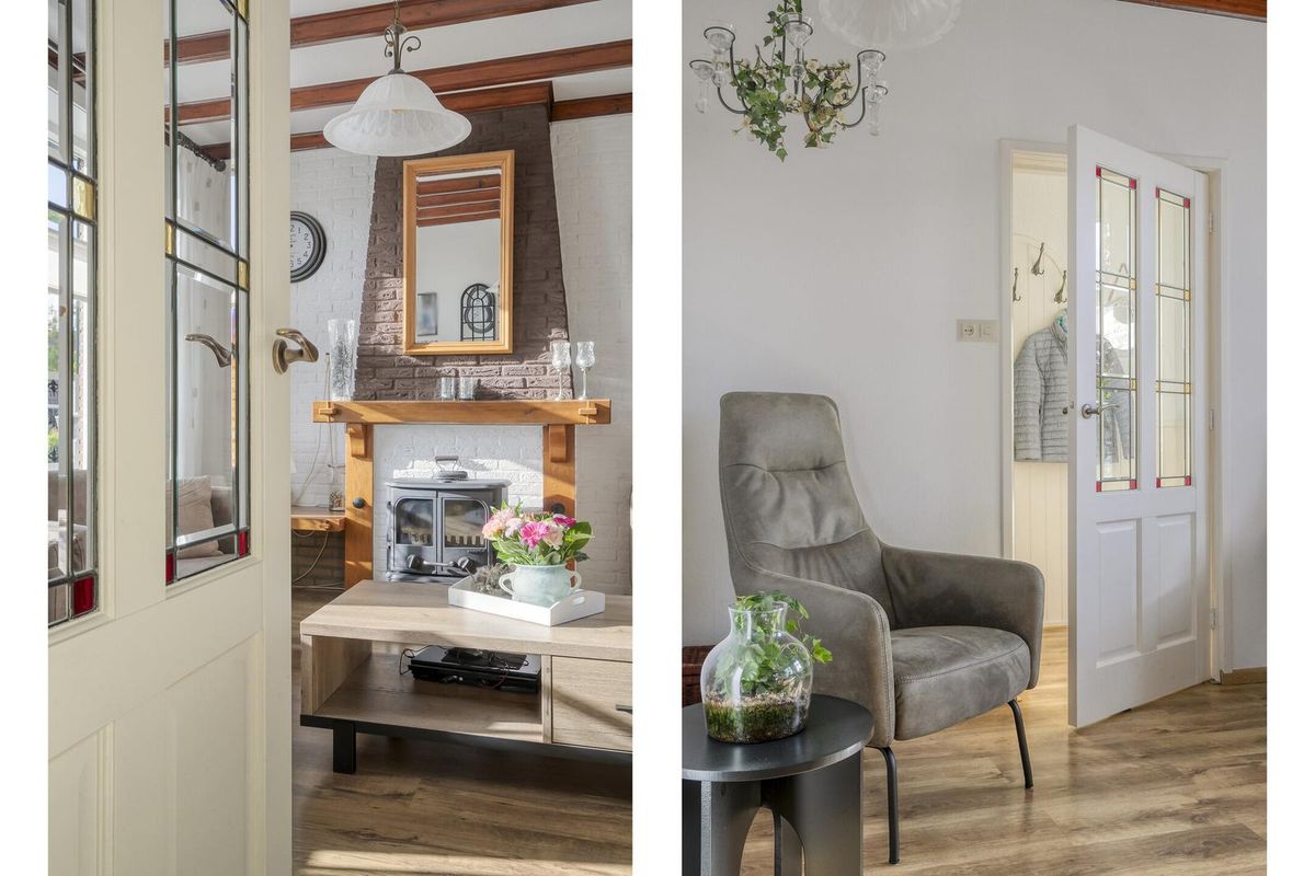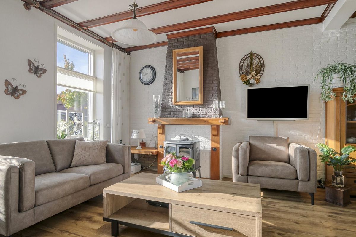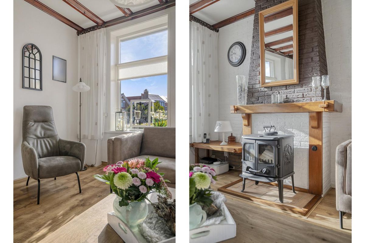 Je komt binnen in een nette hal met lambrisering aan de wanden. In de hal bevinden zich de meterkast, de trap naar boven en de deur naar de woonkamer. De woonkamer is sfeervol en licht, met het zitgedeelte aan de voorzijde en is voorzien van een allesbrander. Vanuit het grote voorraam kijk je uit op een rustig parkeerpleintje, zonder directe overburen – dat zorgt voor extra privacy.