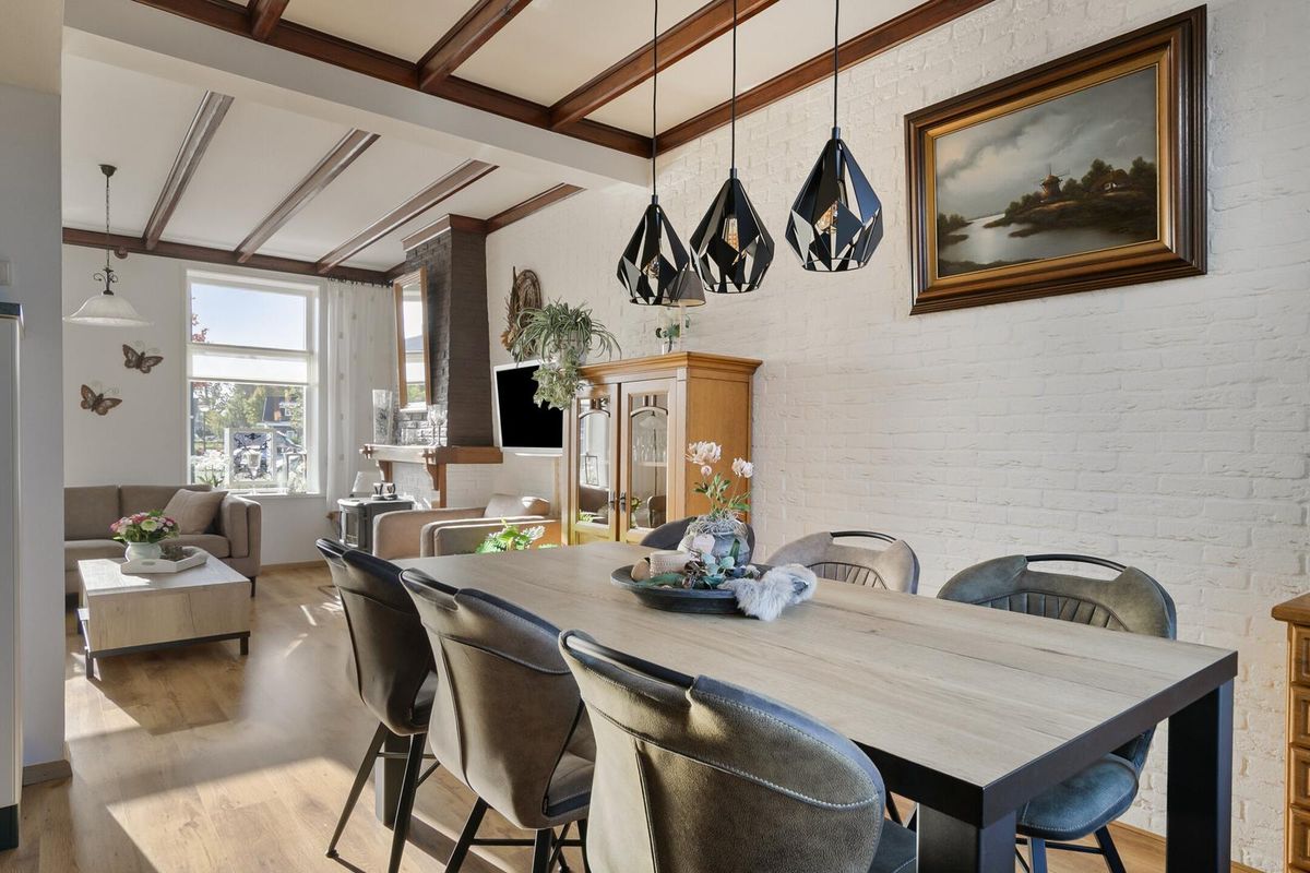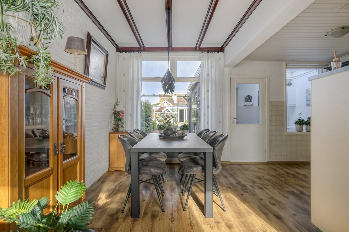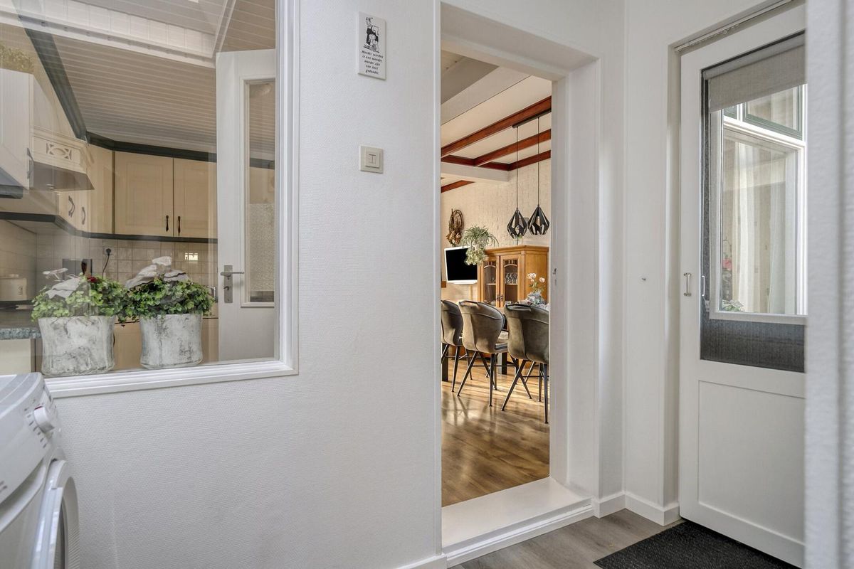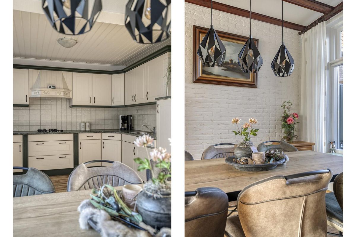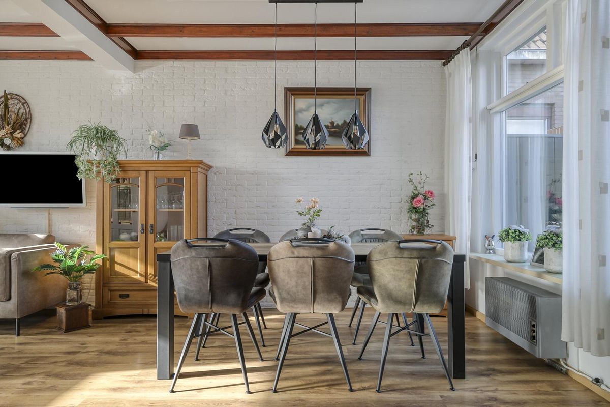 Aan de achterzijde bevindt zich de eethoek, met aangrenzend de ruime open keuken in hoekopstelling. De keuken is voorzien van een koelkast, vaatwasser, 4-pits gasfornuis en afzuigkap.