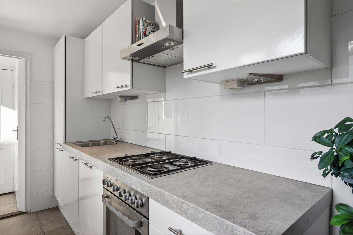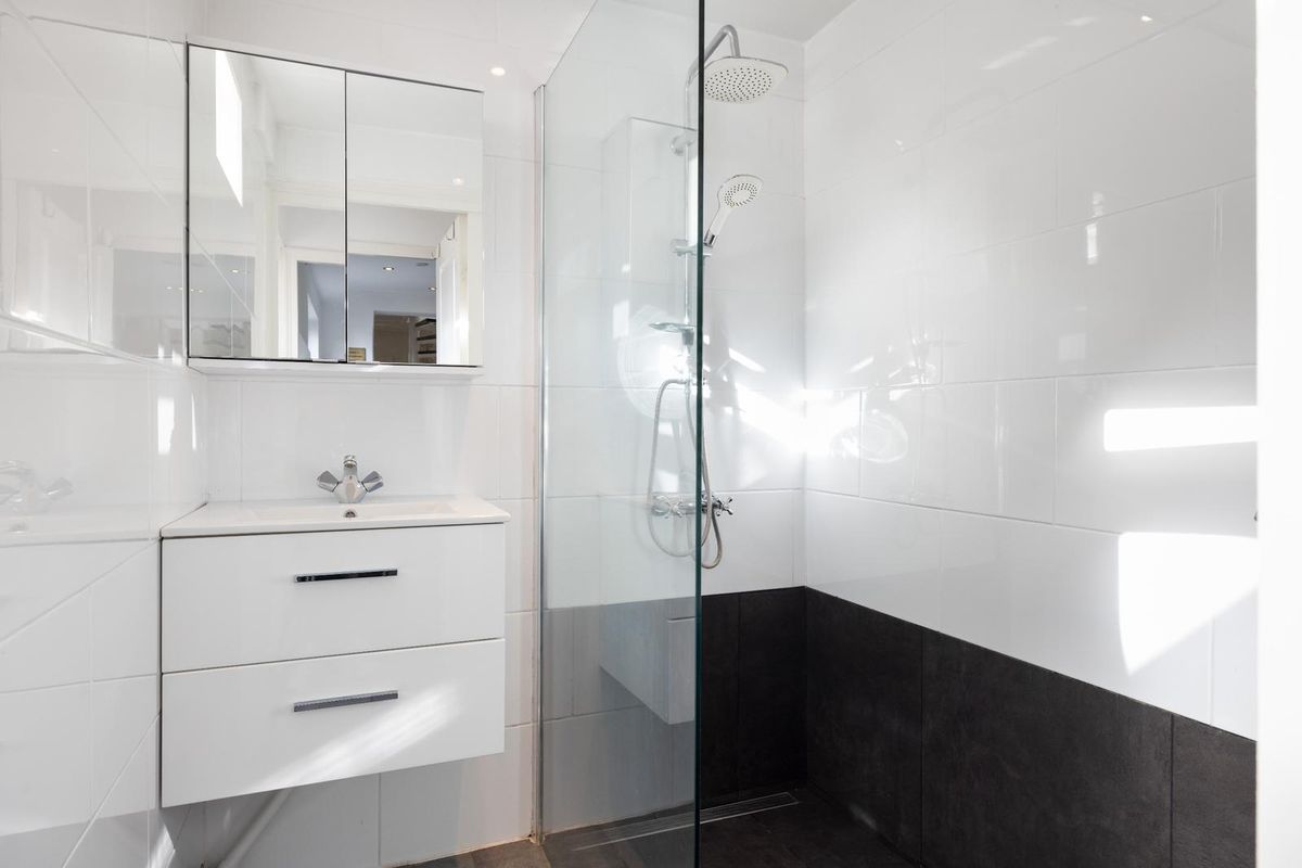 De moderne keuken is voorzien van een 4-pits gaskookplaat, oven en een vaatwasser. Aansluitend bevindt zich de badkamer met een inloopdouche, wastafel met meubel en een separaat toilet, welke eveneens modern is afgewerkt.