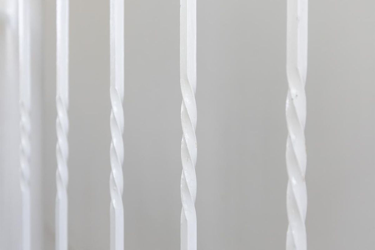 De klassieke wenteltrap leidt naar de overloop met toegang tot twee ruime slaapkamer.