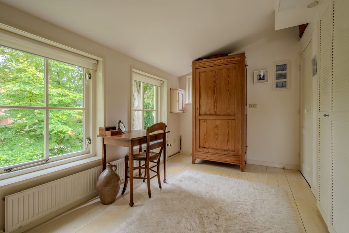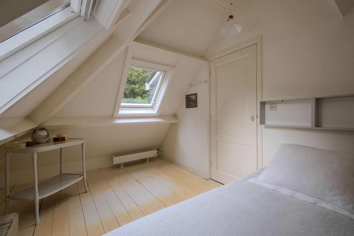 Op de eerste verdieping bevinden zich twee sfeervolle slaapkamers en een lichte, comfortabele badkamer met vloerverwarming, ligbad en toilet. Daarnaast is er een veelzijdige tussenruimte, ideaal te gebruiken als kantoor, studieruimte of kleedkamer. De indeling boven is rustig en praktisch, met veel daglicht en comfortabele ruimtes die het wonen en werken hier extra plezierig maken.