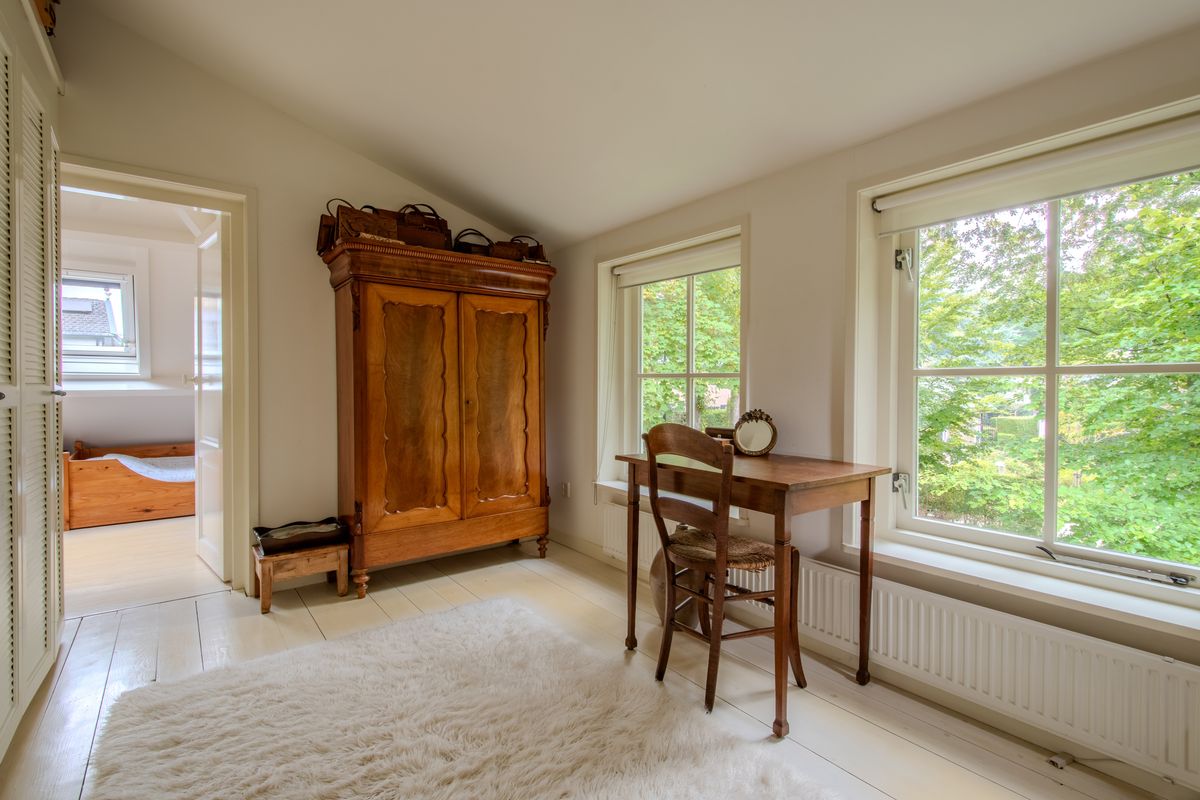 The kitchen is fitted with high-end Miele and Gaggenau appliances and features underfloor heating for extra comfort. At the front, there is space for a large dining table overlooking the leafy Hoflaan, while at the rear you can enjoy views of the beautifully enclosed garden – a secluded, green oasis offering peace and privacy.