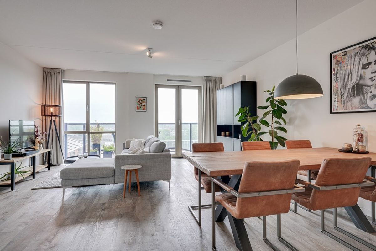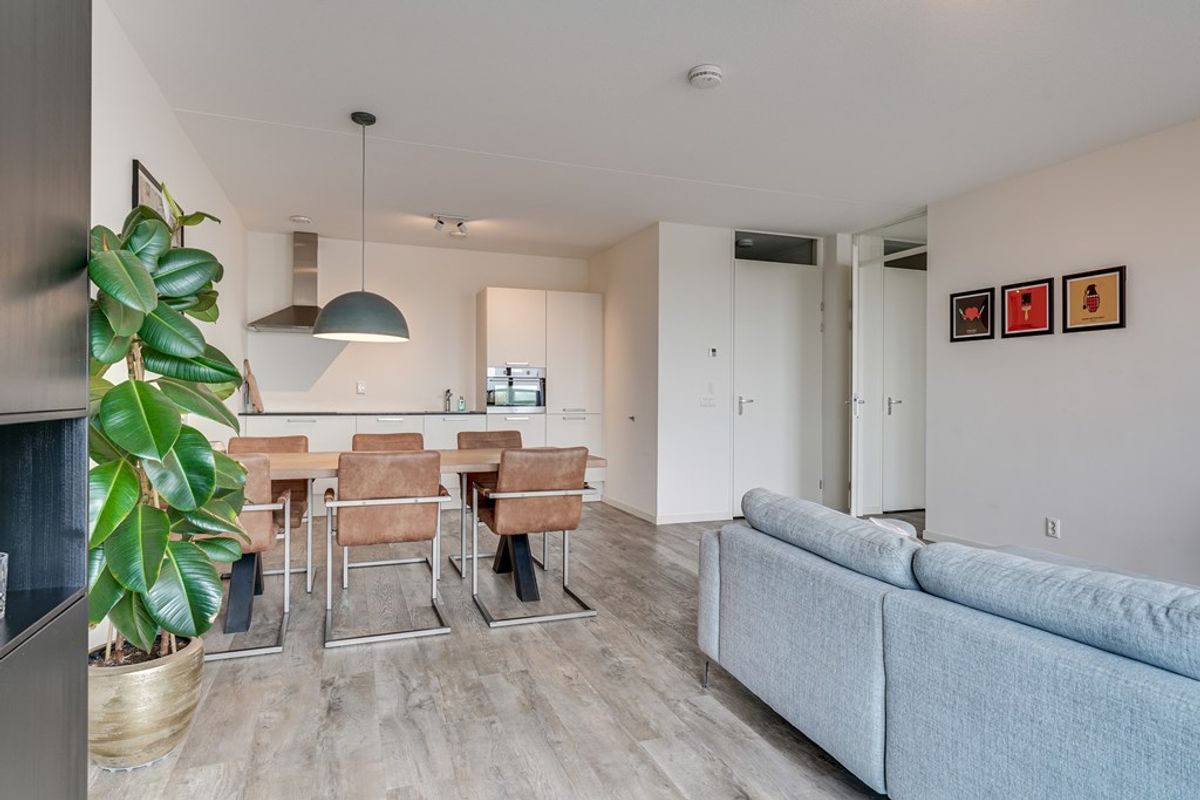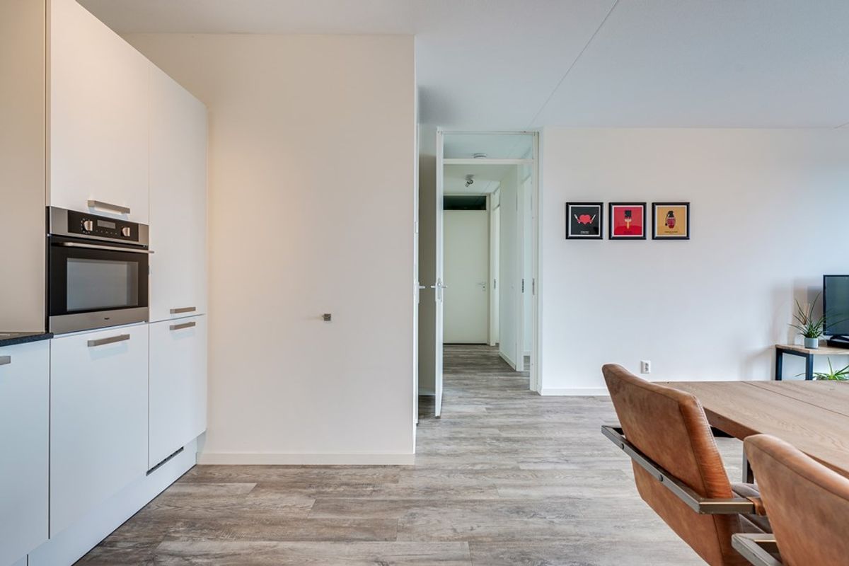 De lichte en ruime woonkamer nodigt uit om te ontspannen, met grote ramen die voor een prettige lichtinval zorgen. De open keuken is volledig uitgerust met moderne apparatuur, waaronder een inductiekookplaat, vaatwasser, koelkast, combioven/-magnetron, en een strakke afzuigkap. Aansluitend aan de keuken bevindt zich het zonnige balkon op het westen, waar je vanaf de middag tot in de avond heerlijk kunt genieten van de zon.