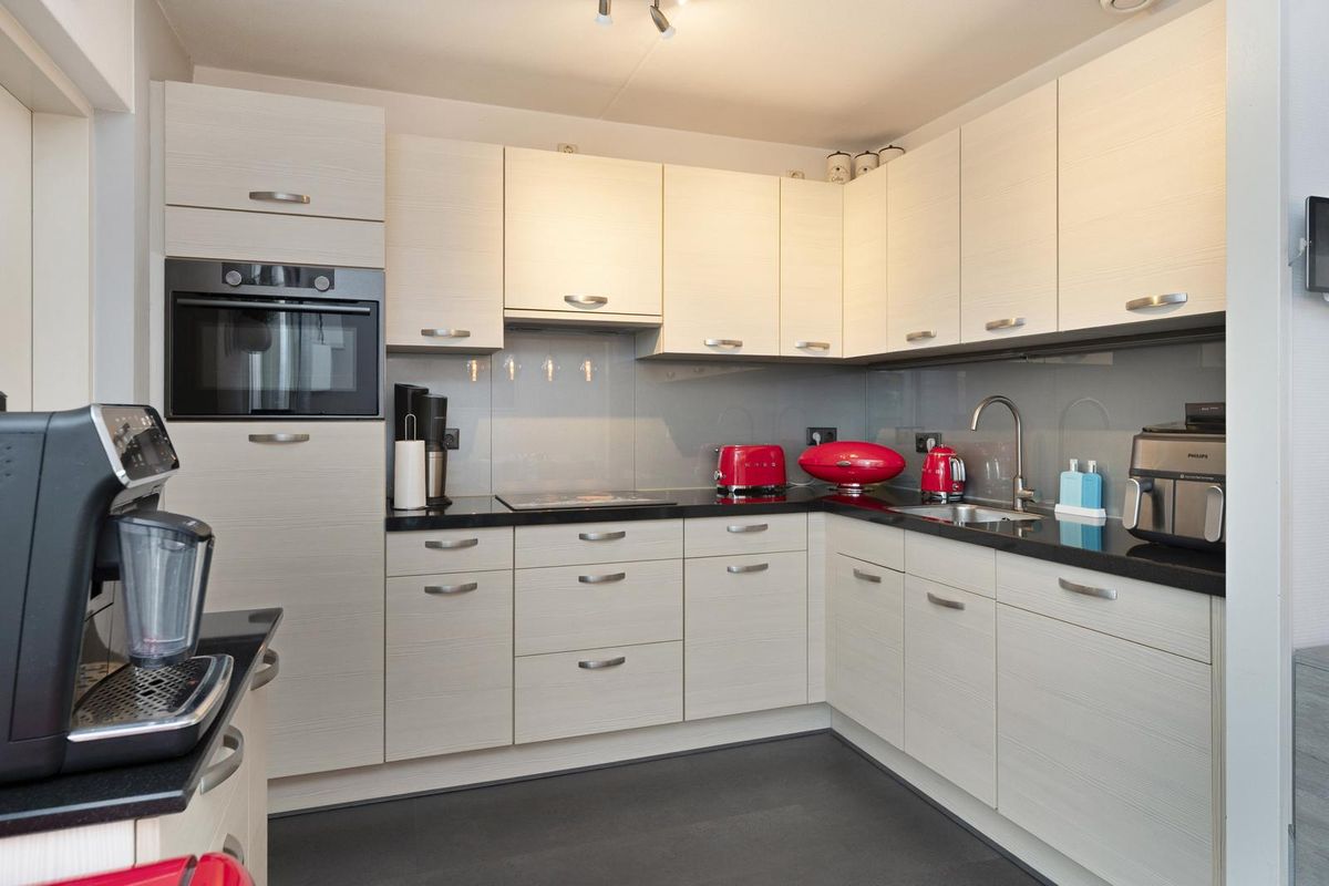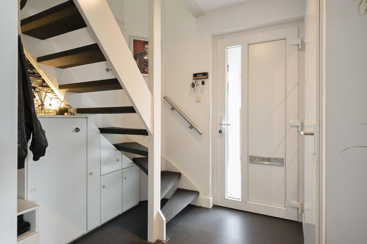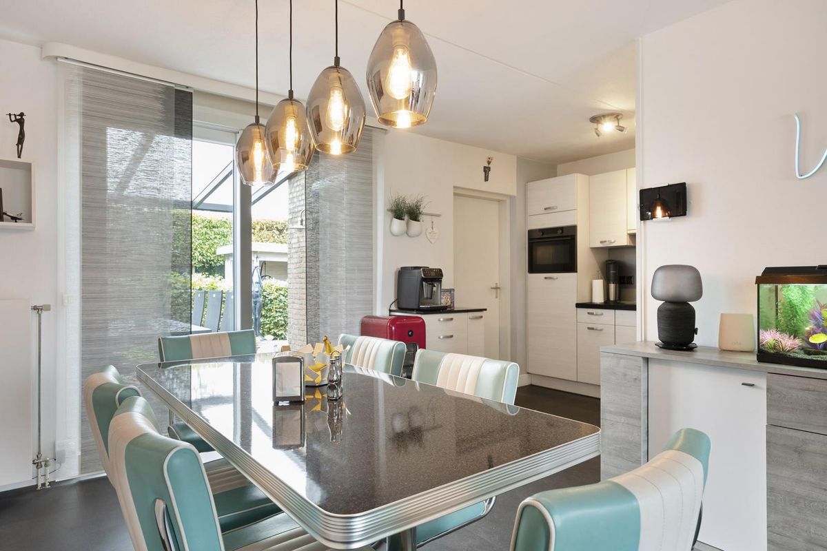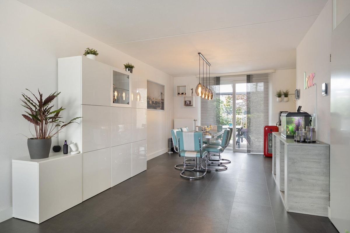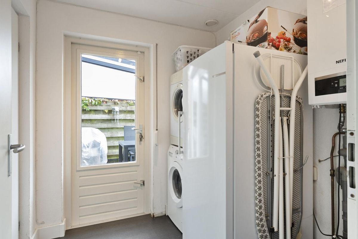 Hal/entree met opgang naar de eerste etage, toilet (voorzien van zwevend closet en fonteintje), meterkast (met een in 2022 gemoderniseerde groepenkast) en toegang tot de living. De living is ruim van opzet (in totaal bijna 10 meter diep) en ingedeeld tot een zitkamer met leuke erker aan straatzijde en de keuken met eettafel aan tuinzijde. De schuifpui biedt mooi contact met de overkapping en de tuin en garandeert een aangename lichtinval. De keuken in L-opstelling is eigentijds van aard en voorziet naast de nodige kastruimte over de volgende apparatuur; inductiekookplaat, afzuigkap (2021), vaatwasser, combi oven-magnetron (2022) en koelkast. Aansluitend aan de keuken is de bijkeuken gelegen met opstelplaats van de cv-ketel (in eigendom, bouwjaar 2017), aansluitpunten voor wasapparatuur en toegang tot de tuin en de garage. De garage is met 3.40 meter extra breed en biedt een wastafel met warm en koud water, deur richting tuin en een elektrisch bedienbare sectionaalpoort.
