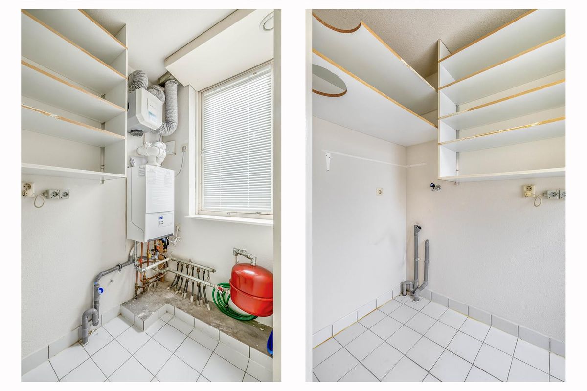 De woonkamer biedt directe toegang tot het balkon door middel van een loopdeur. Vanaf het balkon is er vrij uitzicht op het aanwezige groen. In de open keuken zijn een 4-pits gasfornuis met oven en afzuigkap aanwezig. De bijkeuken is voorzien van een tegelvloer, de cv-ketel, de witgoedaansluiting en een raam. Beide slaapkamers zijn ruim.
