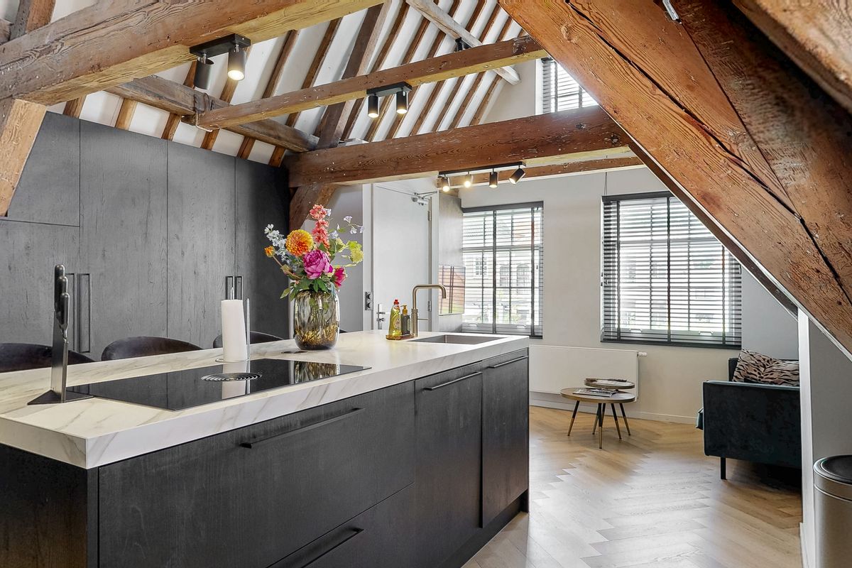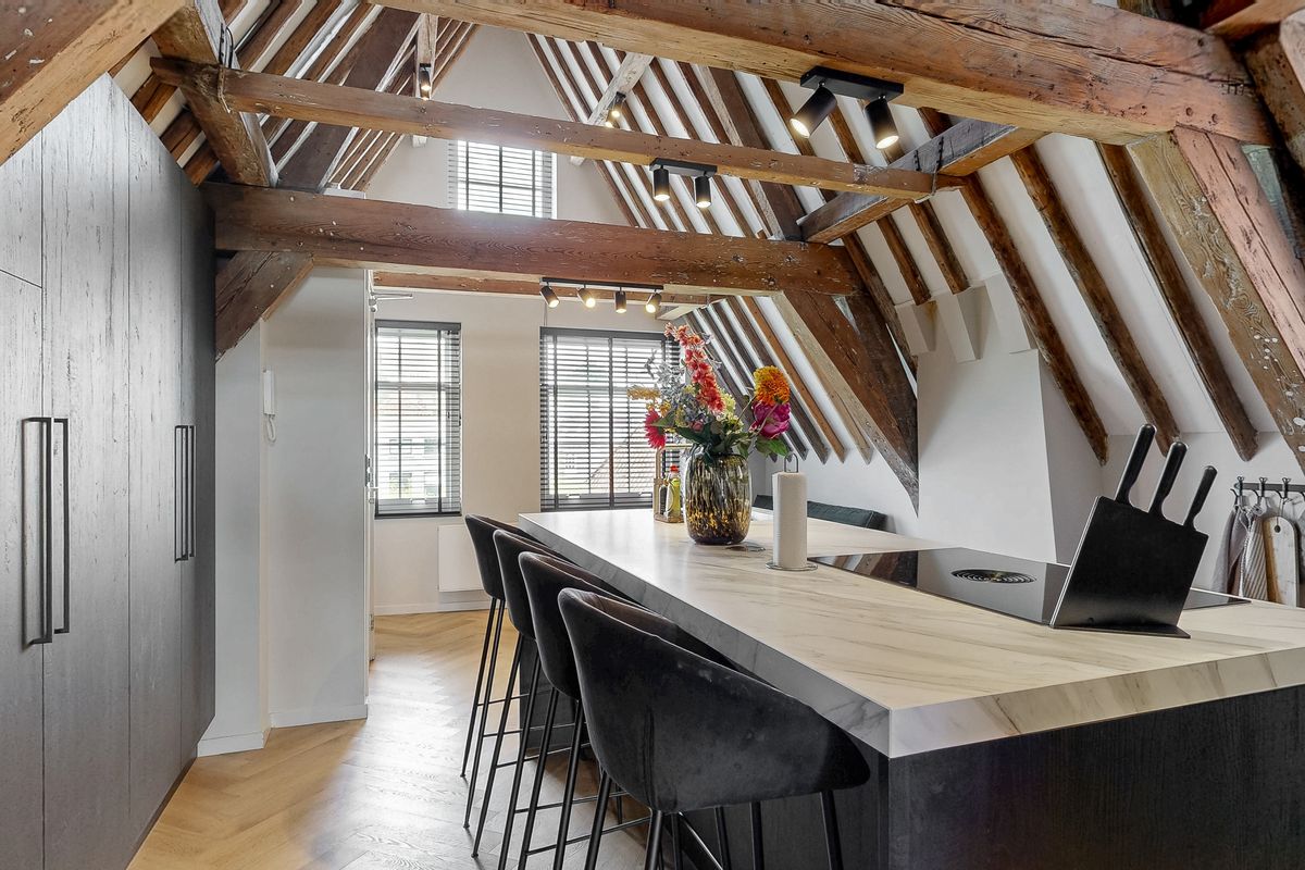 Deze luxe bovenwoning is tot in de puntjes verzorgd en biedt een prettige indeling. Bij binnenkomst valt direct de lichte woonkamer op, met voldoende ruimte voor een comfortabele zithoek. De moderne open keuken is een echte eyecatcher: uitgerust met hoogwaardige inbouwapparatuur én een stijlvol kookeiland met bar, ideaal voor kookliefhebbers en gezelligheid. De keuken is afwerkt met materialen van topkwaliteit en biedt een "hotel-sjieke" uitstraling, perfect voor wie van het beste houdt.