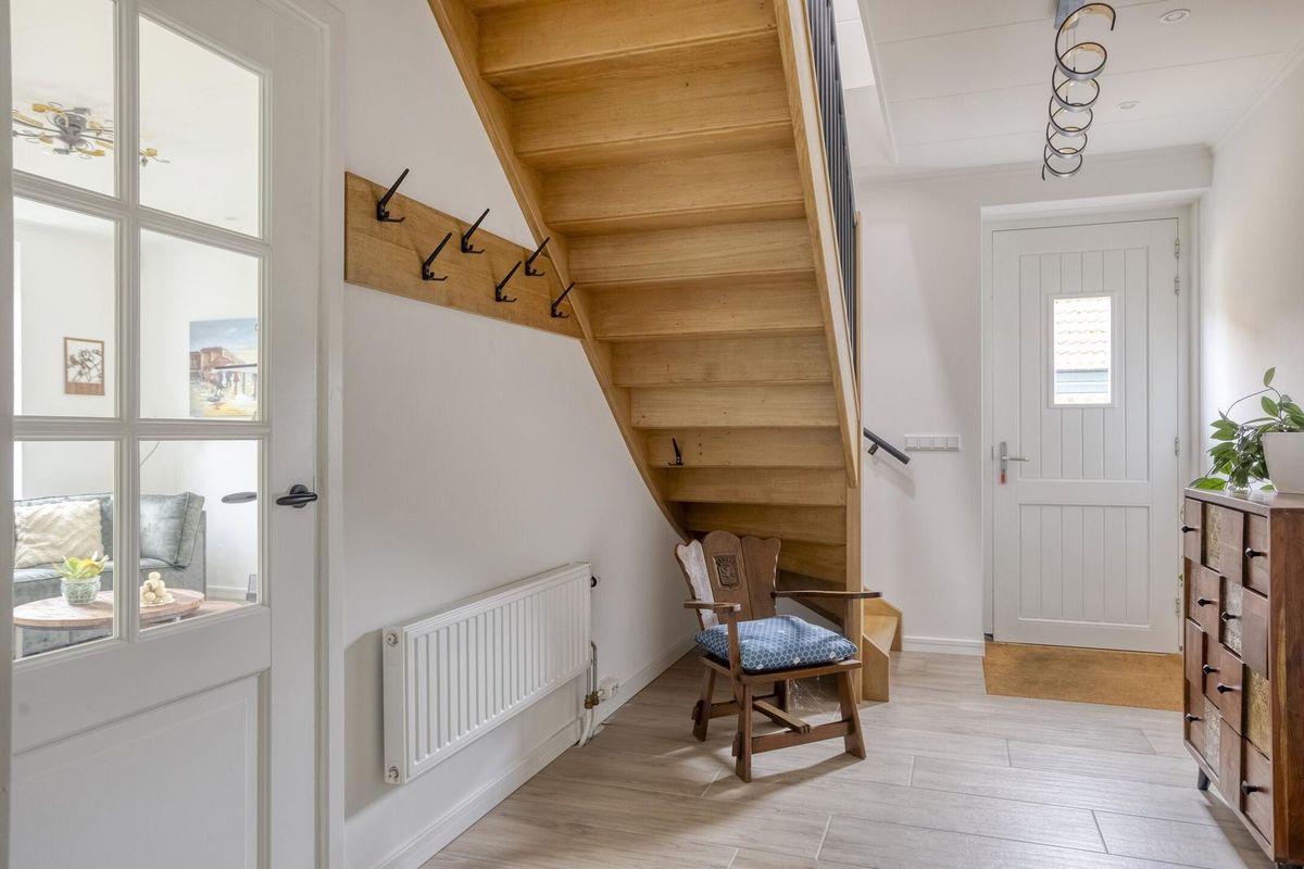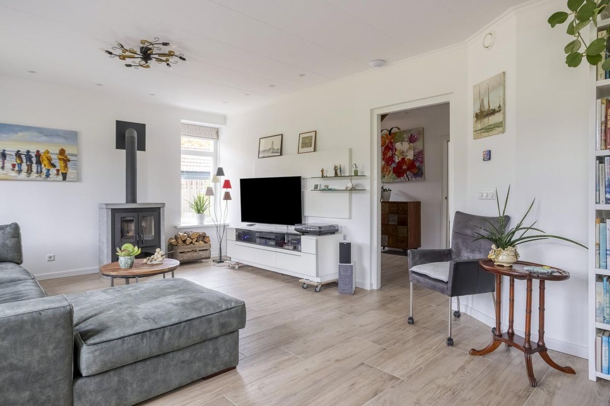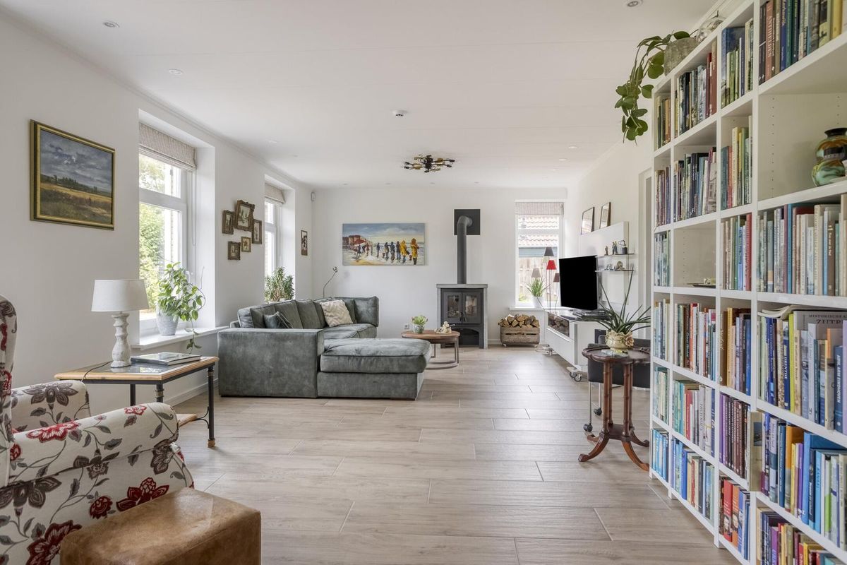 Het hele linker gedeelte inclusief de hal die beide woningen verbindt, is in 2020/2021 gerealiseerd. Dit betreft een zeer degelijke bouw met hoogwaardige materialen waarbij kosten noch moeite gespaard zijn. Aan de voorzijde is er een indrukwekkende hal met rechts de originele woning. Aan de voorzijde van het nieuwe gedeelte bevindt zich de woonkamer met sfeervolle haard en grote raampartijen voor voldoende lichtinval. De gehele woning is voorzien van vloerverwarming en de begane grondvloer is afgewerkt met een fraaie houtlook tegelvloer. Als we verder doorlopen vanuit de entree komen we in een hal/verkeersruimte met toegang tot de praktische bijkeuken, technische ruimte, riante toiletruimte en achterin de woonkeuken