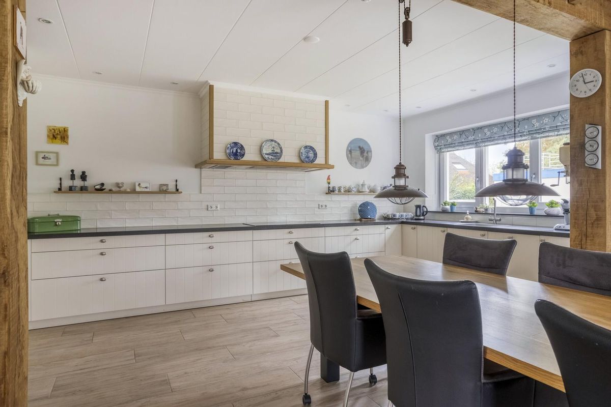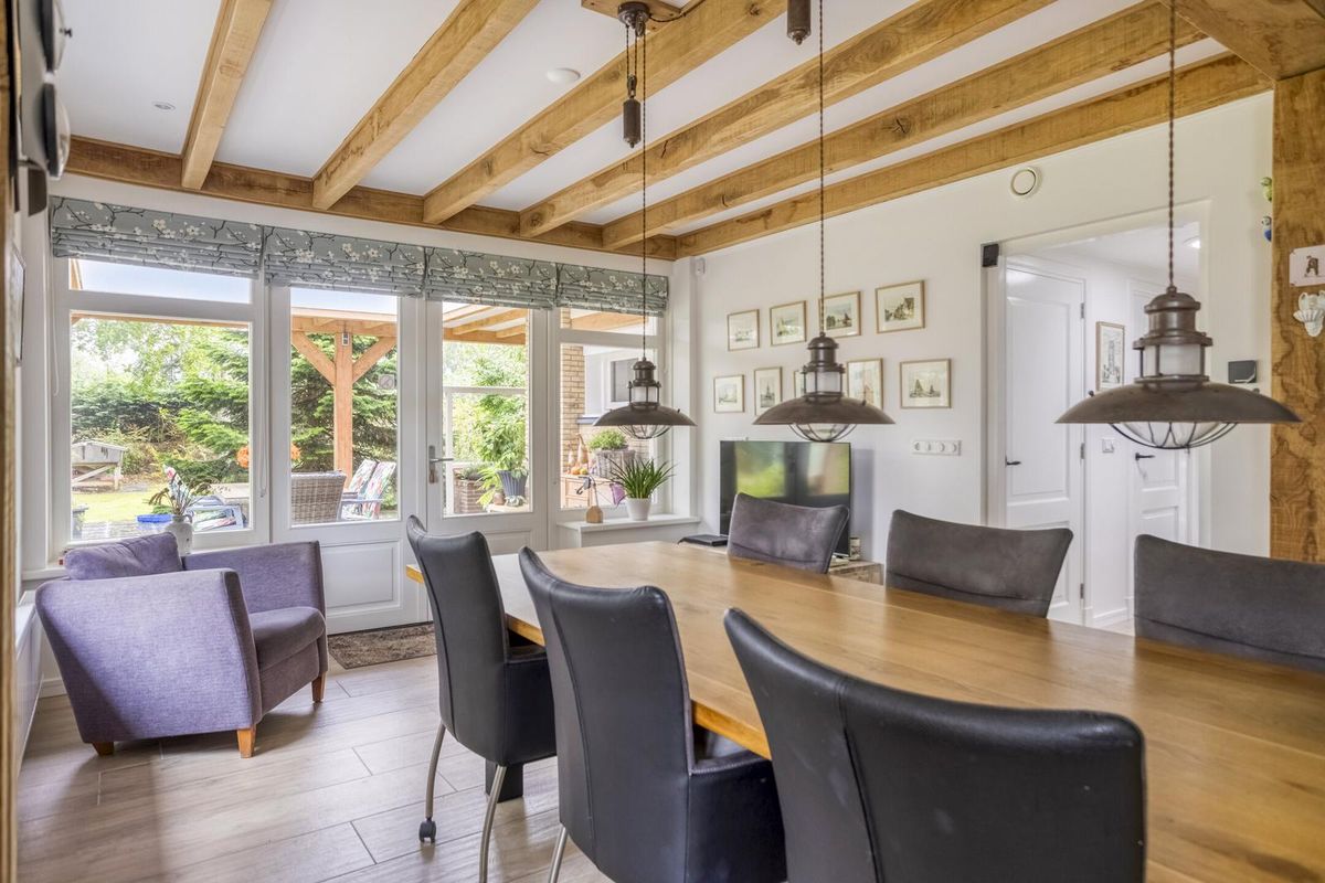 De woonkeuken aan de achterzijde is met ruim 35 m2 van een mooi formaat en doordat deze ruimte tuingericht is, zit je hier heerlijk rustig met familie en vrienden aan het diner. De grote Douglashouten veranda met lichtstraat aan de woonkeuken zorgt voor een mooie verbinding van binnen met buiten.