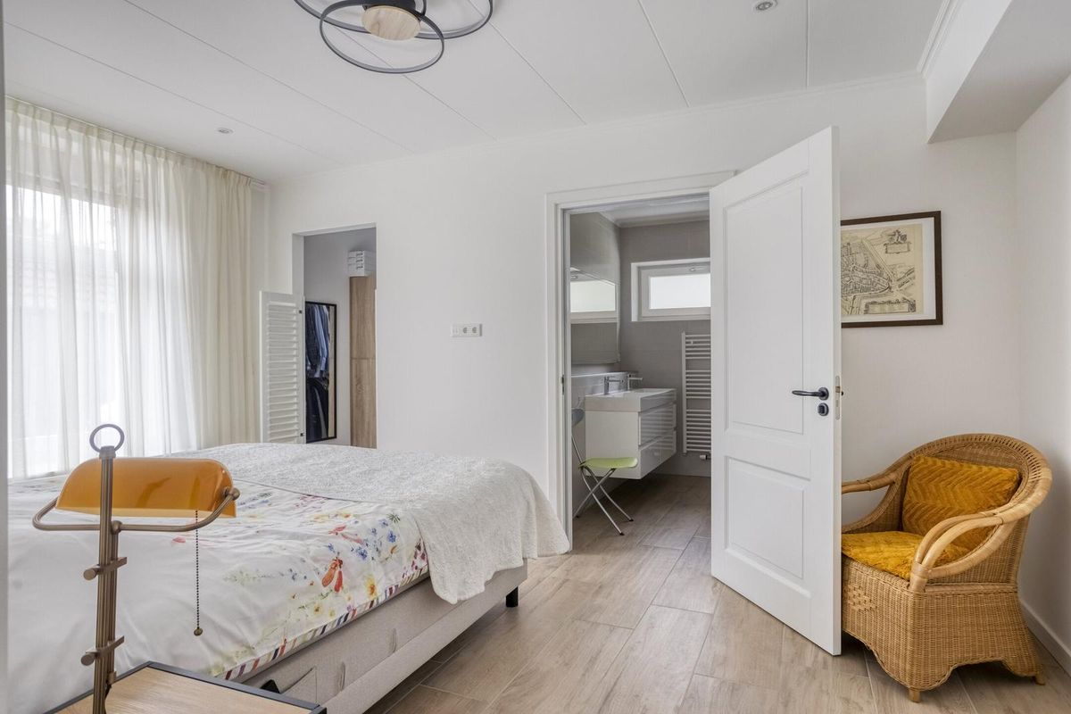 Een ander groot pluspunt is de aanwezigheid van een gelijkvloers woonprogramma met een zeer riante slaapkamer en badkamer en suite op de begane grond. De slaapkamer is bijna 15 m2 groot en heeft naast deze ruimte nog een grote inloopkast een badkamer en suite met dubbel wastafelmeubel, toilet en riante inloopdouche.