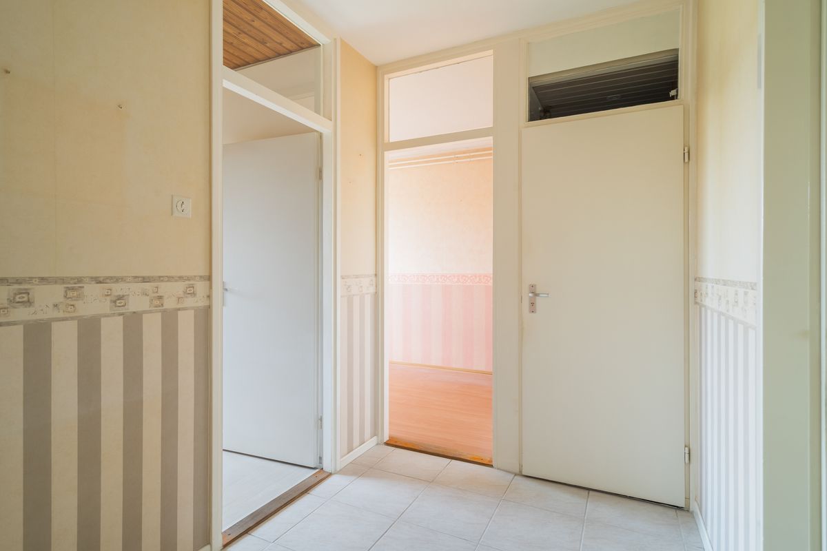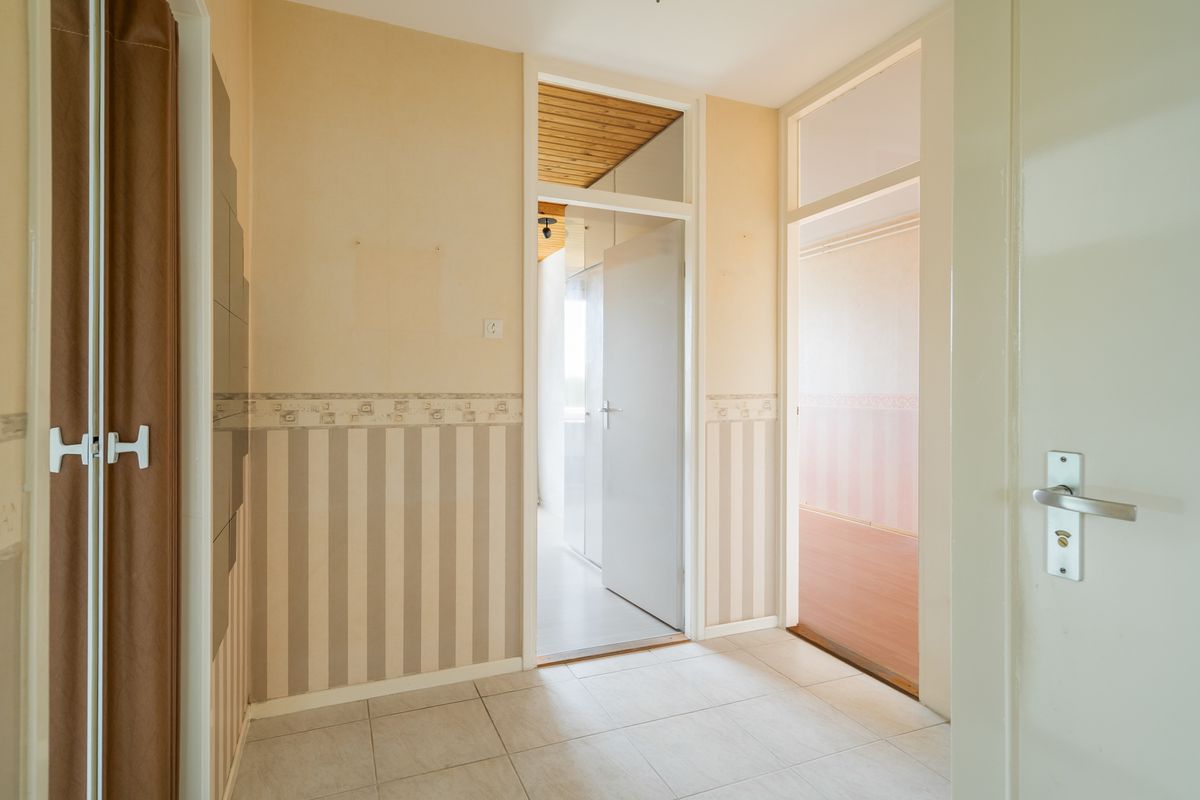 De keuken ligt aan de voorzijde en is praktisch ingedeeld met voldoende ruimte voor apparatuur en kastruimte. Vanuit de hal zijn verder het separate toilet en de badkamer bereikbaar. De badkamer is voorzien van een wastafel en douche.