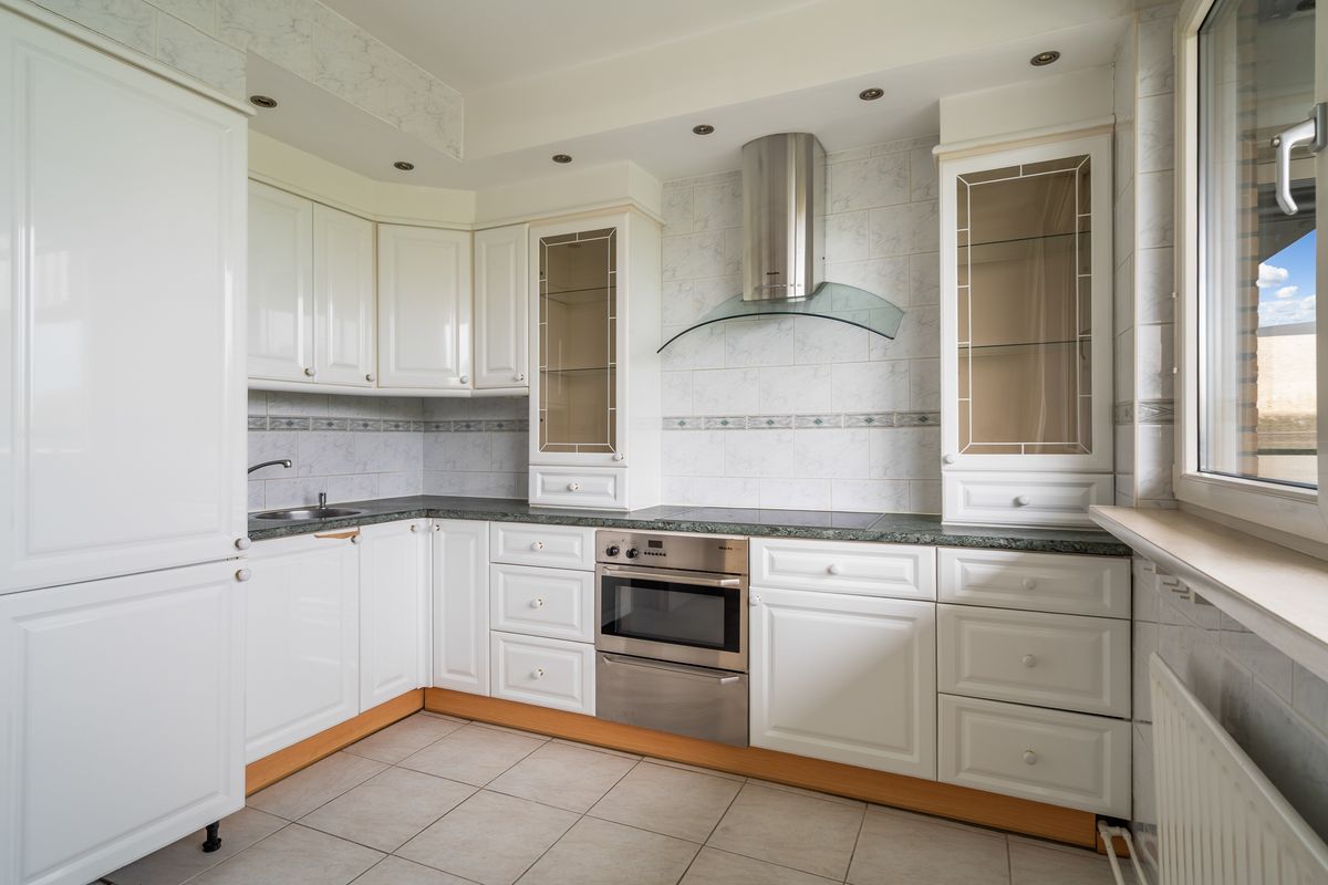 The living room is exceptionally spacious and bright thanks to the large windows. From here, you can step directly onto the balcony—a wonderful spot to sit outside, enjoy the sun, and take in the views of the surroundings.