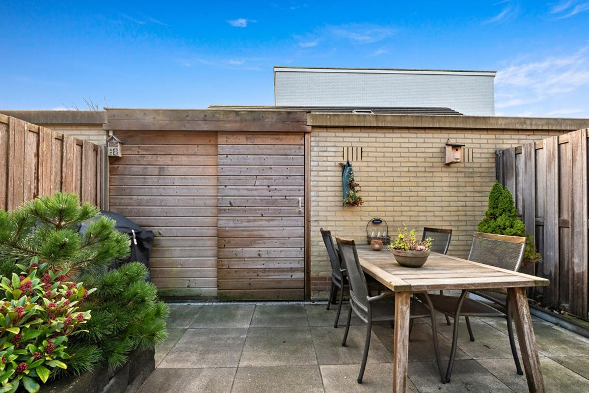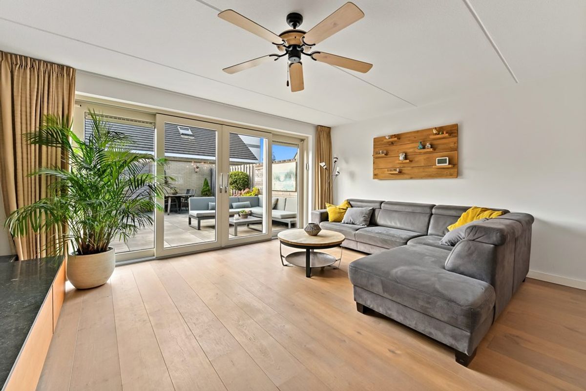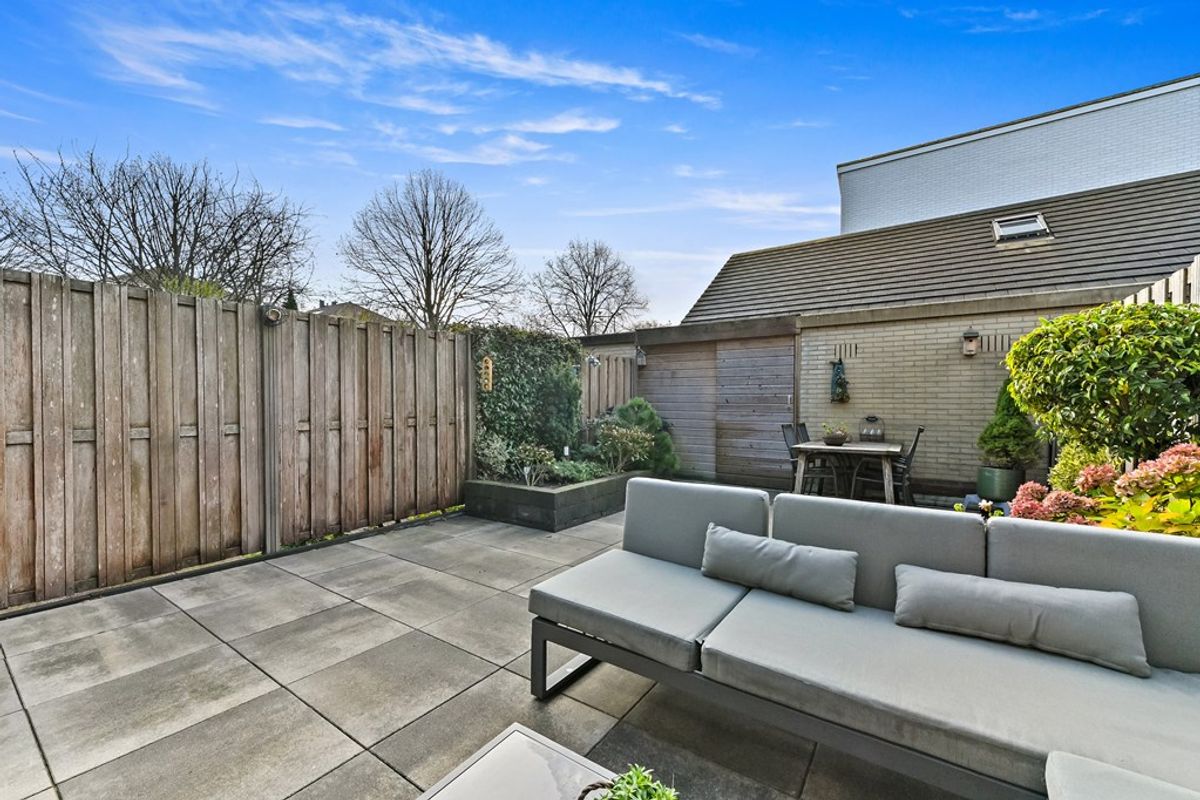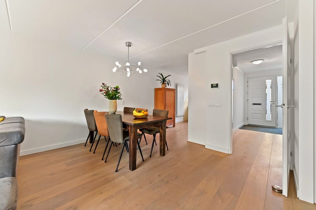 Via de voortuin met eigen oprit en buitenkraan bereikt u de entree van de woning. In de ruime hal vindt u de meterkast, trapopgang naar de eerste verdieping en een bergkast met de verdeler van de vloerverwarming. De toiletruimte is voorzien van wandcloset en fonteintje. Vanuit de hal bereikt u de tuingerichte woonkamer met dubbele schuifpui naar de zonnige achtertuin op het zuidwesten. De woonkamer is sfeervol ingericht en voorzien van een wandmeubel met gashaard, welke in de woning achterblijft. De eethoek grenst aan de keuken welke aan de voorzijde van de woning te vinden is. De keuken in L-opstelling is ruim van formaat en voorzien van diverse inbouwapparatuur, waaronder een 5 pits gaskookplaat, RVS afzuigkap, koelkast met vriesvak, combi-magnetron en vaatwasser. Ook is er een 10 liter boiler aanwezig waardoor u snel beschikt over warm water. Op de begane grond is een houten lamel vloer aanwezig welke indien gewenst nog meerdere keren kan worden opgeschuurd. De zonnige tuin is verzorgd aangelegd en gelegen op het zuidwesten, deze is bereikbaar vanuit de woning en via het achterom waar tevens plek is voor het stallen van de afvalcontainers. In de achtertuin is een stenen berging aanwezig en aangrenzende overkapping; perfect voor bijvoorbeeld het stallen van de fietsen. Aan de achtergevel is een elektrisch bedienbaar zonnescherm en buitenkraan gemonteerd.
