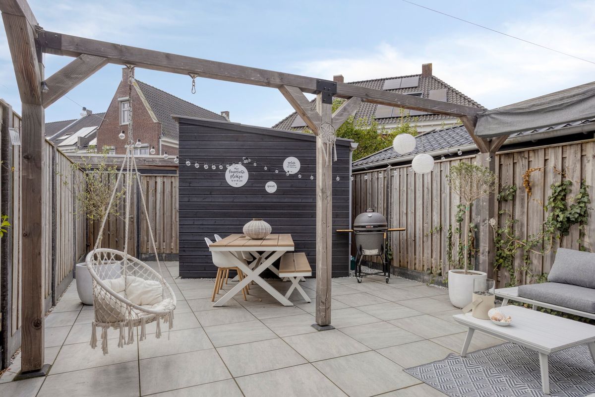 De achtertuin is modern, licht en onderhoudsvriendelijk en beschikt over een berging. Een heerlijke plek waar je direct kunt genieten van de zon en gezellige avonden met vrienden of familie kunt hebben.