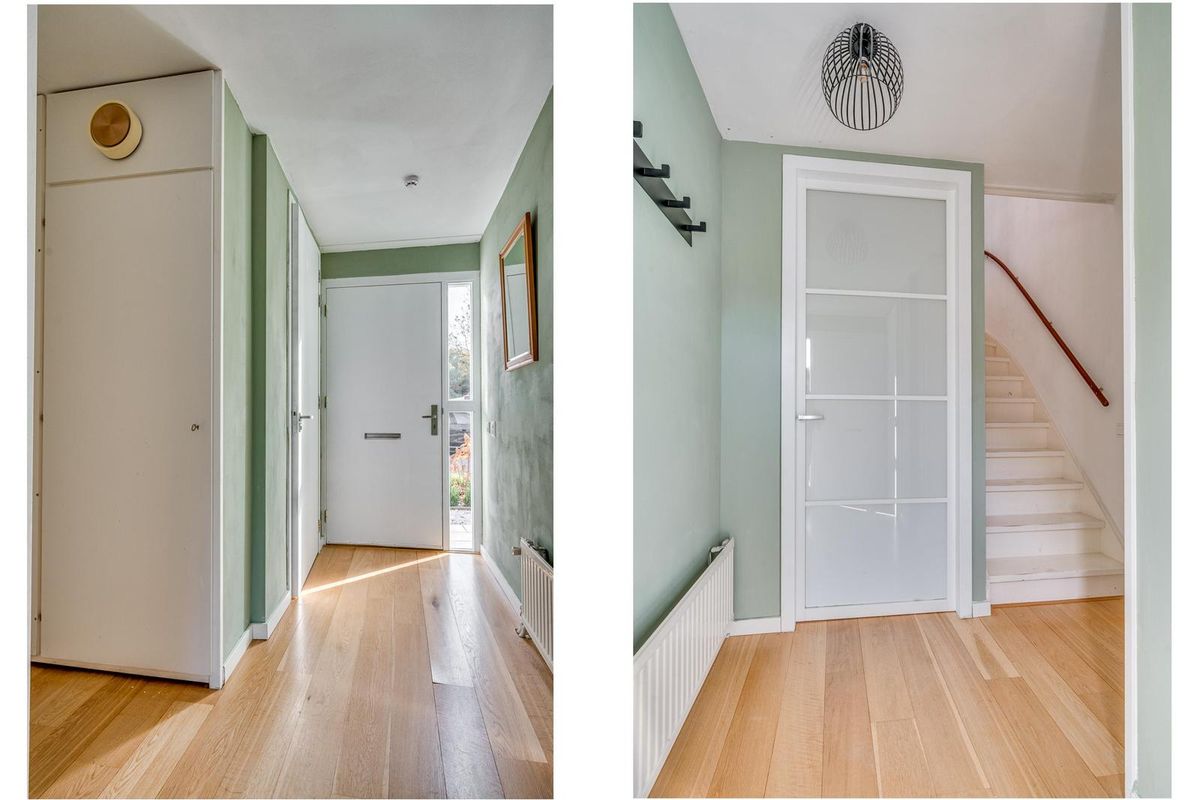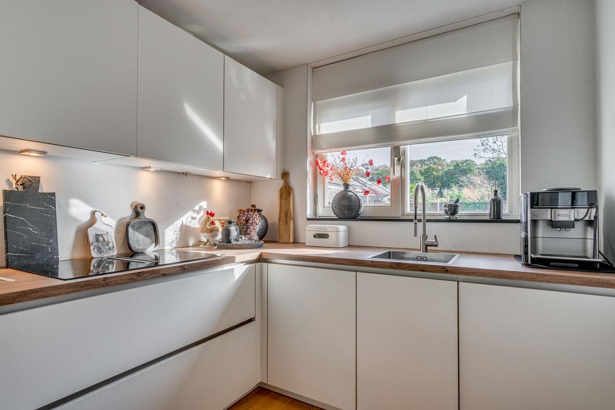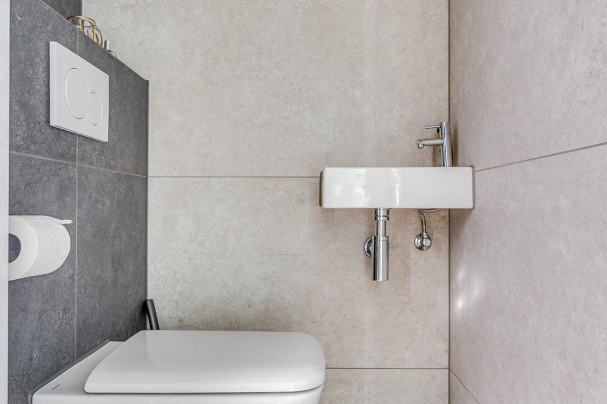 Vanuit de eigen oprit is de entree van de woning en de berging te bereiken. De entree/hal geeft toegang tot de trapopgang naar de 1e verdieping, meterkast, separate toiletruimte en de woonkamer. De geheel betegelde toiletruimte is voorzien van een zwevend toilet, fonteintje en mechanische ventilatie. Middels een loopdeur is er toegang tot de woonkamer met open keuken. De woonkamer is aan de achterzijde ingericht met de zithoek en loopdeur naar de overkapping. De keuken met eethoek is aan de voorzijde gelegen. De keuken is voorzien van een inductiekookplaat met interne afzuiging, vaatwasmachine, koelkast, combioven/ magnetron en spoelbak. De woonkamer beschikt verder over veel lichtinval en een airco. Verder is er een trapkast aanwezig en is er middels een loopdeur toegang tot de hal. De hal geeft de mogelijkheid om de riante slaapkamer, badkamer en inpandige berging te betreden. De slaapkamer is ca. 16m² groot en geeft middels een loopdeur wederom toegang tot de tuin met overkapping welke middels glazen schuifwanden afsluitbaar is. De mooie riante badkamer is modern, volledig betegeld en voorzien van een inloopdouche, wastafel met meubel, zwevend toilet, mechanische ventilatie en een designradiator. De inpandige berging geeft de mogelijkheid om de fietsen etc. in te plaatsen.