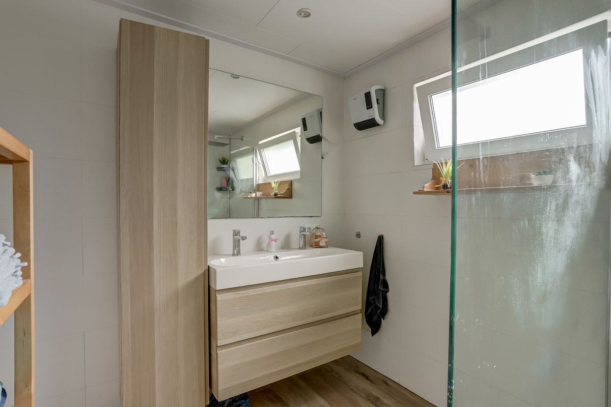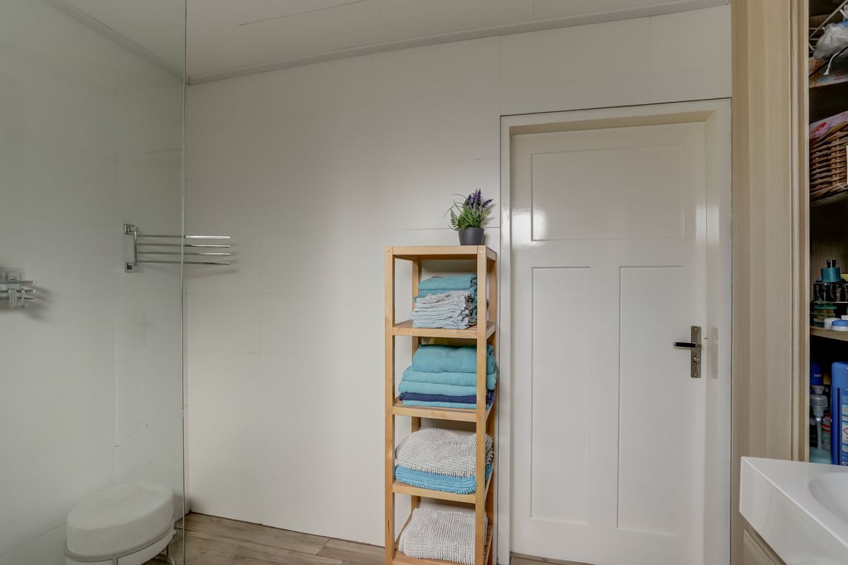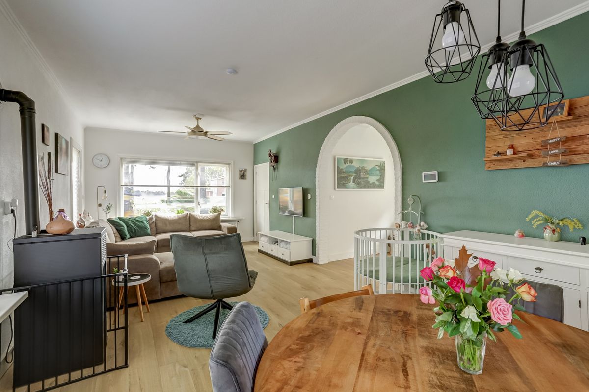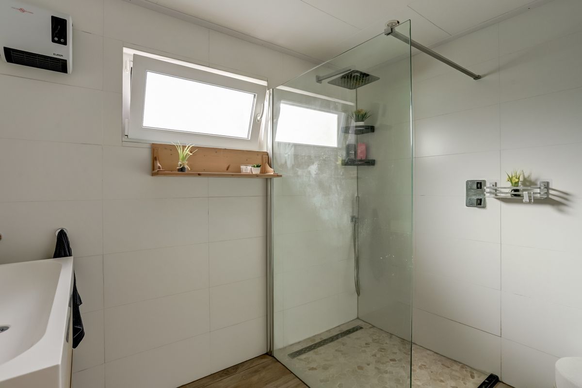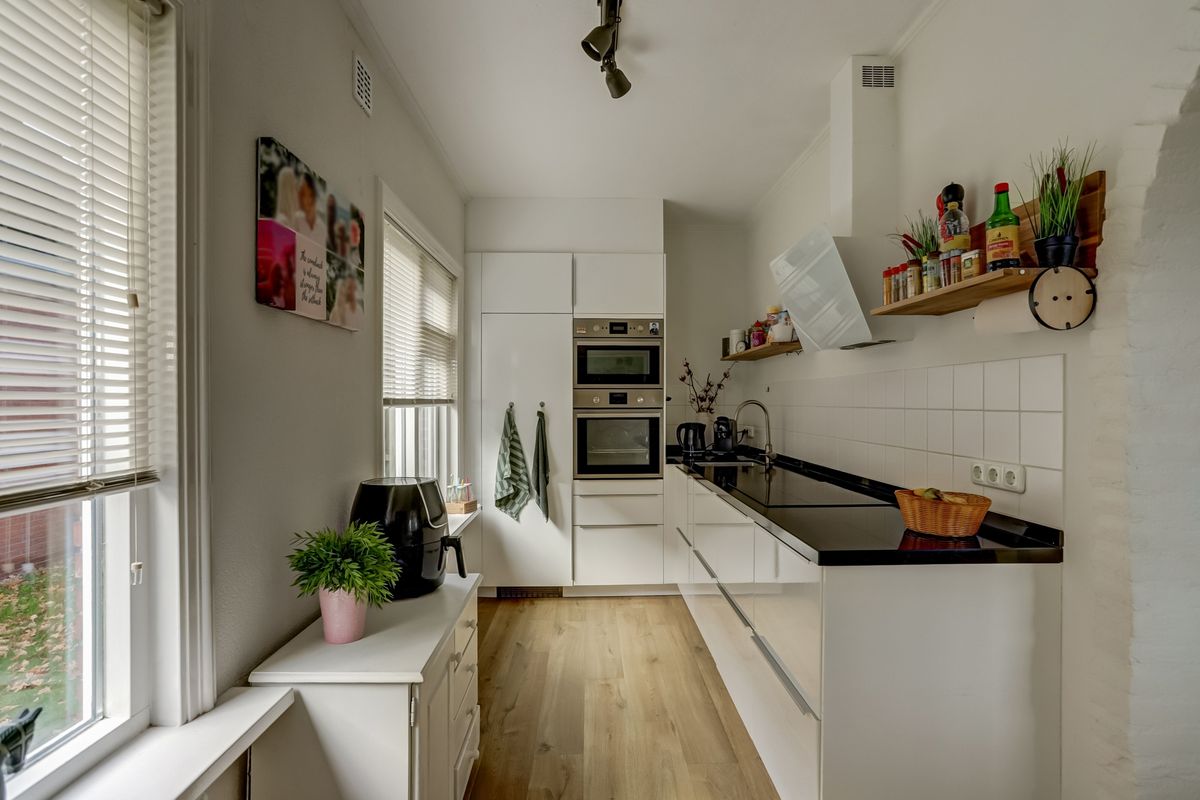 U komt binnen in de entree aan de voorzijde, waar zich ook de meterkast bevindt. Via de hal bereikt u de lichte, open woonkamer met een fijne doorzonindeling en veel natuurlijke lichtinval. De huidige bewoners hebben een extra raam aan de achterzijde laten plaatsen waardoor er zicht is op de achtertuin. De open keuken sluit aan op de woonkamer en is voorzien van moderne inbouwapparatuur, waaronder een inductiekookplaat, combi-oven/magnetron, vaatwasser, oven, koelkast en afzuigkap. Aansluitend aan de eetkamer vindt u een deur naar het achterste gedeelte van de woning. Hier bevinden zich een extra slaapkamer, een netjes onderhouden badkamer (voorzien van inloopdouche en dubbele wastafel) en een praktische bijkeuken. Dankzij deze indeling is de woning geschikt voor gelijkvloers wonen.