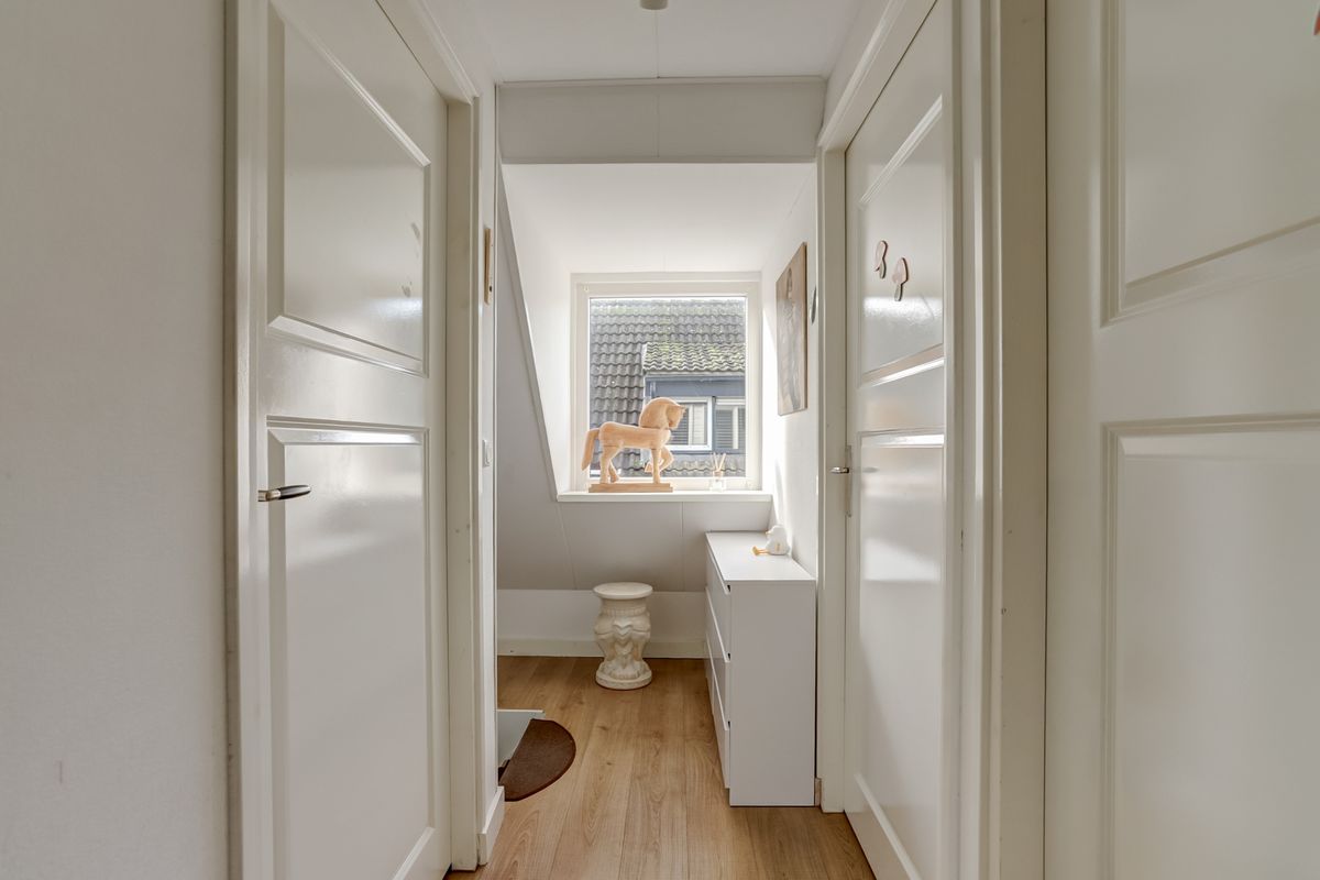 Overloop met dakkapel voor extra stahoogte. Drie slaapkamers, waarvan de ramen zijn voorzien van kunststof kozijnen met elektrische rolluiken voor extra comfort en energiebesparing.