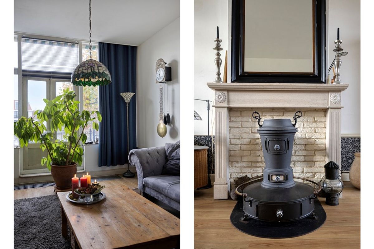 De woonkamer is een ware blikvanger. Oorspronkelijk een en-suite woonkamer, nu één grote ruimte van bijna 40 m² waar de sfeer van toen behouden is gebleven. Denk aan de hoge schuiframen aan de voorzijde, de haard, de prachtige lijstwerken en natuurlijk de openslaande deuren naar de tuin. Elke hoek ademt nostalgie en warmte – een plek waar je meteen tot rust komt.