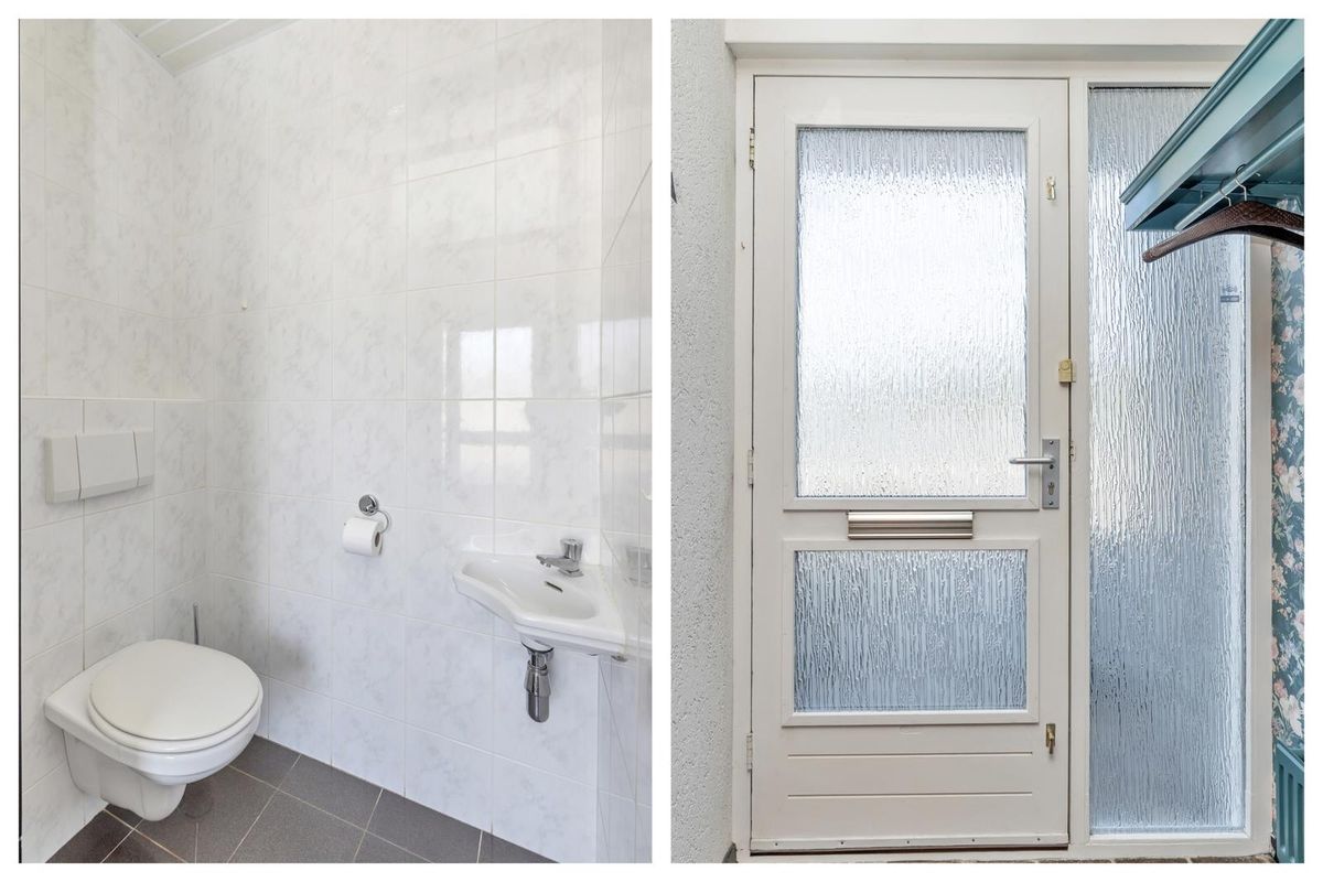 * Entree/hal met meterkast en modern, geheel betegeld toilet voorzien van vrijhangend wandcloset en fonteintje.