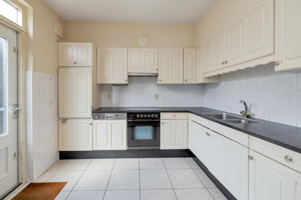 Via de keuken is er direct zicht op de besloten achtertuin, ideaal voor gezinnen met huisdieren.