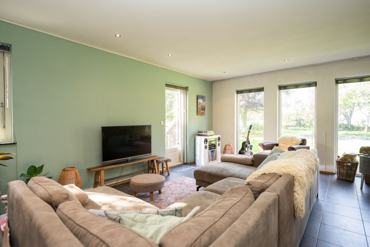Achter de woning ontvouwt zich een ware oase van rust: een uitgestrekte tuin met prachtig uitzicht over de weilanden, waar u volledige privacy ervaart.