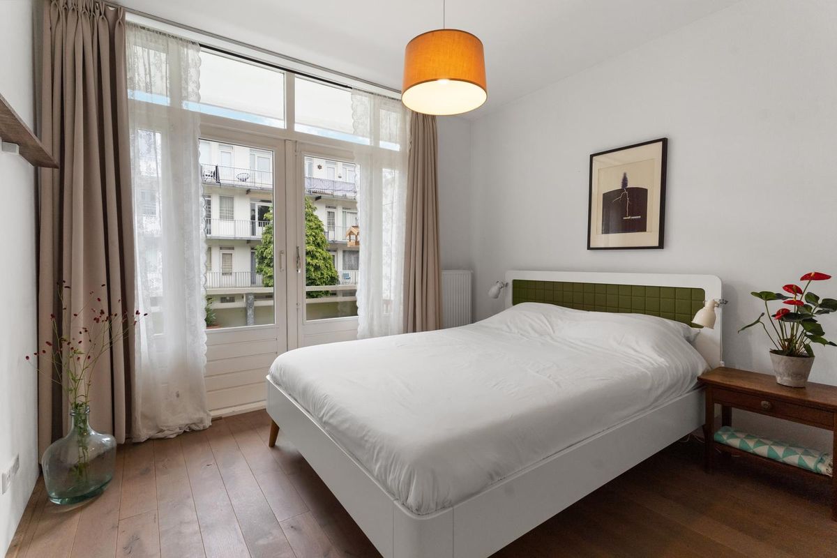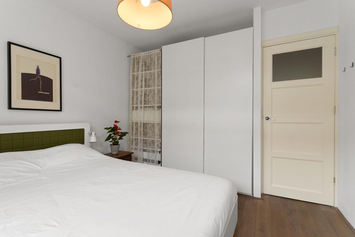De slaapkamer bedraagt ca. 14m² en biedt daarmee ruim voldoende plaats voor een tweepersoonsbed en ruime kledingkast. Deze kamer geniet bovendien twee openslaande deuren naar het balkon, die het gevoel van ruimte vergroten. Het balkon is tevens via de keuken te bereiken en is gelegen op het oosten. Het balkon beslaat ca. 7m² en beschikt over opbergruimte.