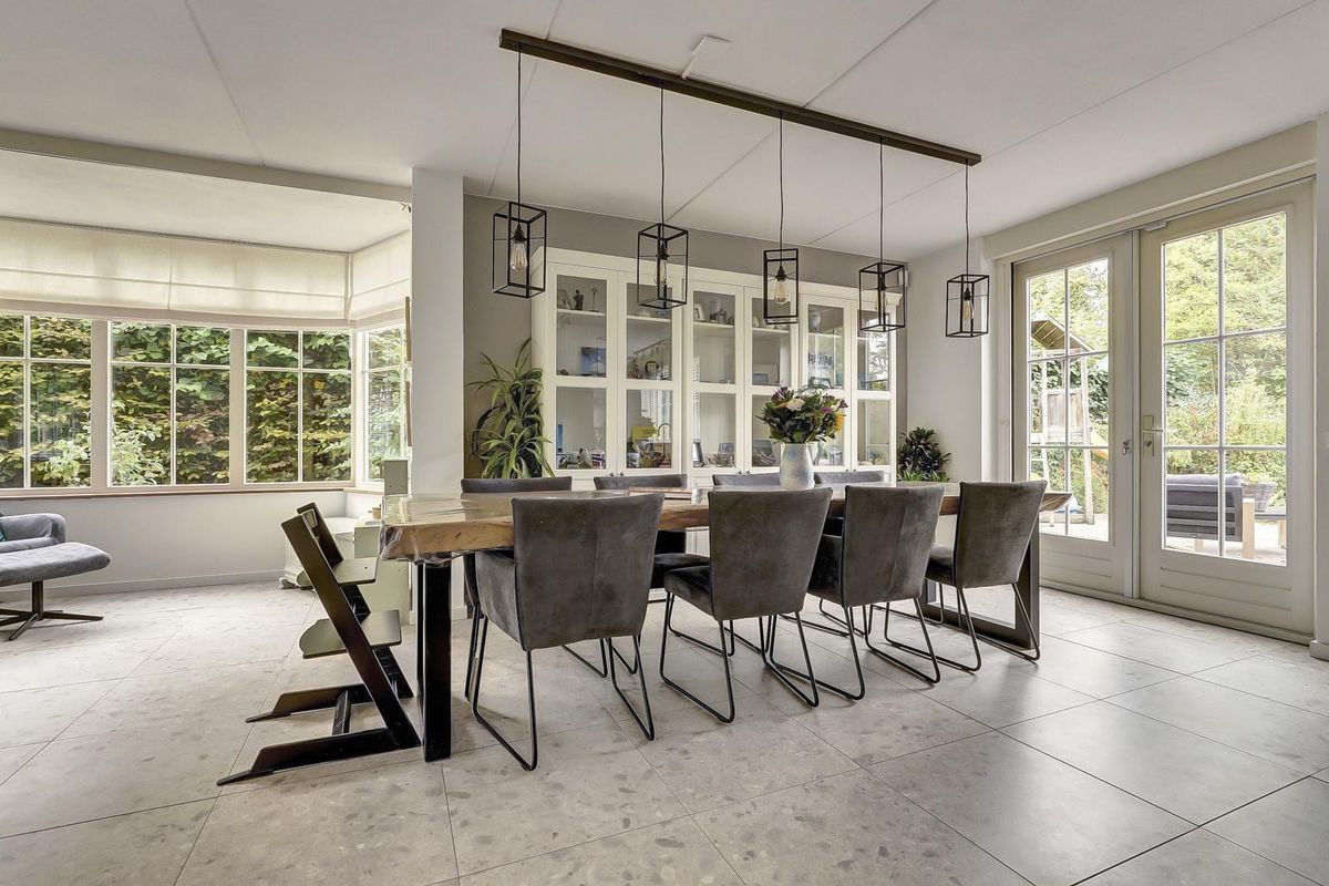 De onder architectuur aangelegde tuin is een waar buitenparadijs. Direct achter de woning ligt een royaal terras waar u kunt genieten van zonnige dagen en lange zomeravonden. Verder vindt u een ruim gazon, een natuurlijke vijverpartij en volwassen beplanting die veel privacy biedt. Twee houten bijgebouwen – waaronder een sfeervolle overkapping met zithoek en een houten berging – maken de tuin compleet.