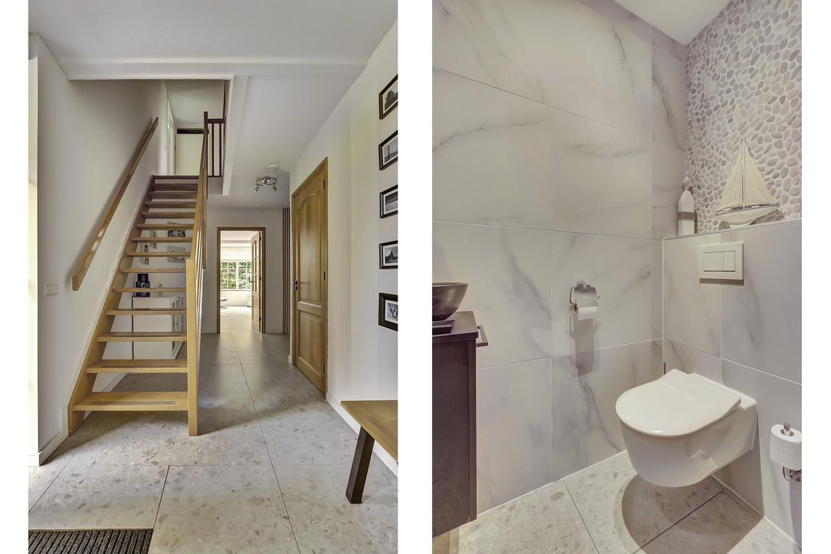 U arriveert via een statige oprit met sierhek, leibomen en een keurig aangelegde voortuin. De entree brengt u in de lichte hal met toegang tot de meterkast, het toilet en de woonkamer. Hier ervaart u meteen de ruime opzet en de nette afwerking.
