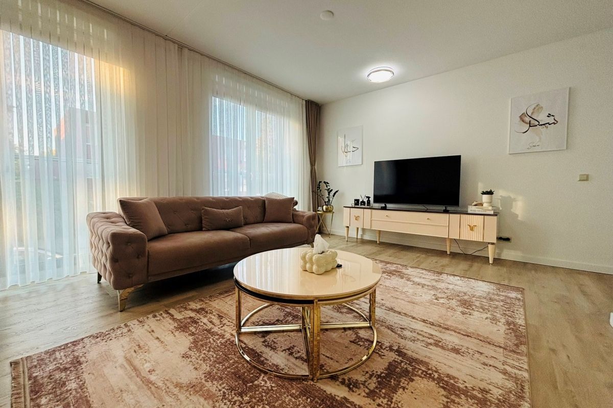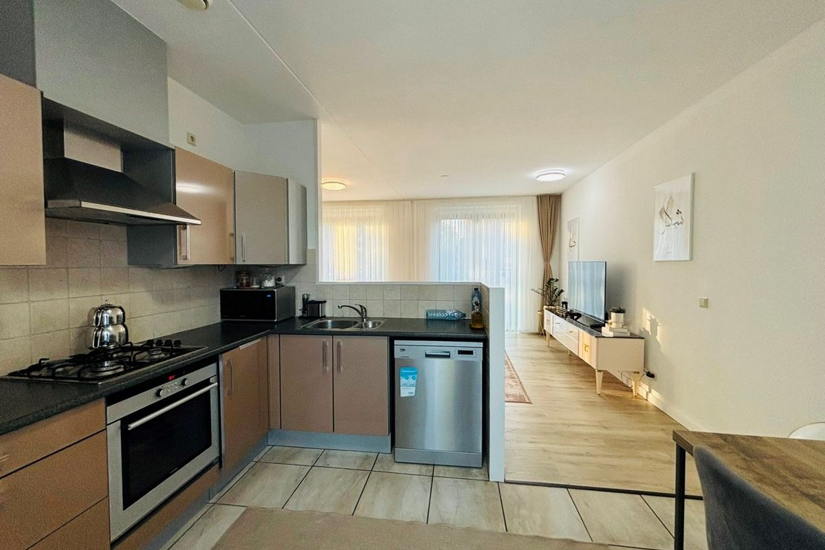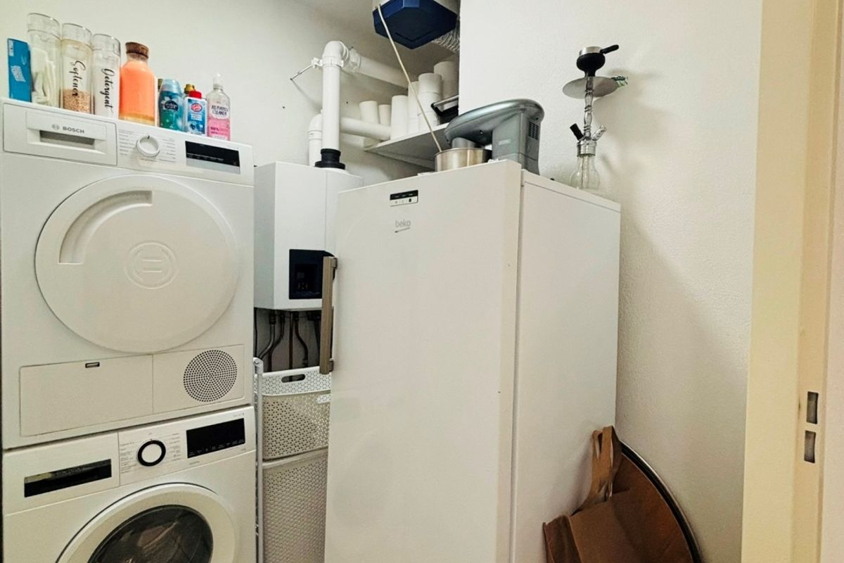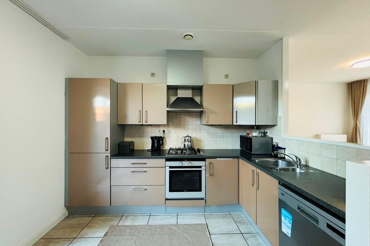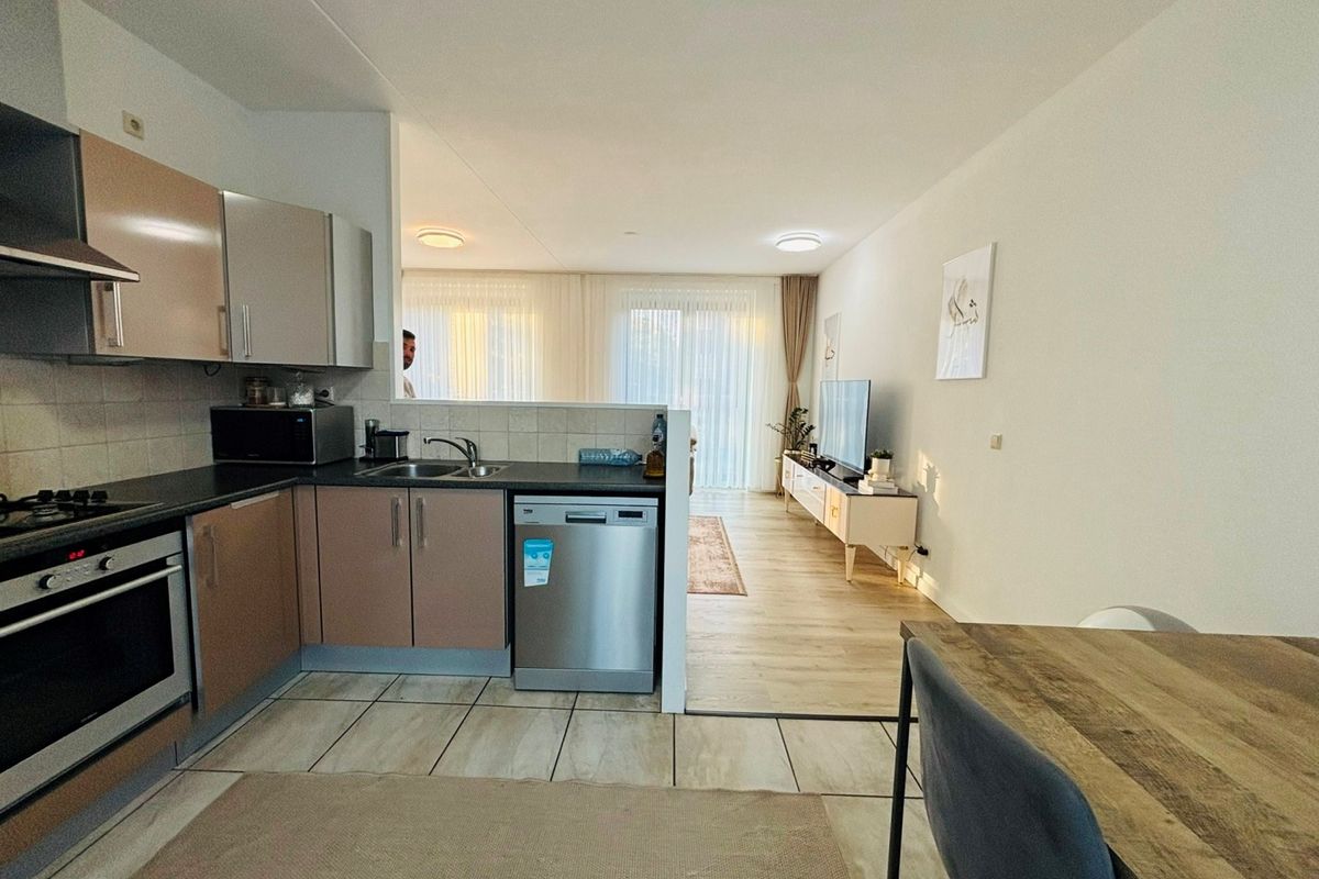 Deze frisse, energiezuinige woning heeft een ruime woonkamer, twee slaapkamers, een inloopkast als berging, ruime badkamer met ligbad en douche, separate toilet een (open)keuken met alle inbouwapparatuur te weten kookplaat, recirculatiekap, koel-/vriescombinatie, vaatwasser en oven.