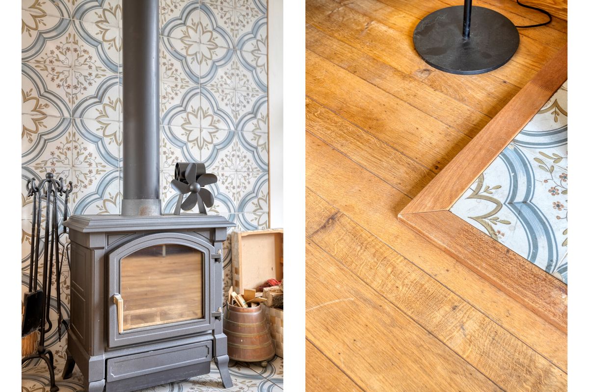 En dan de woonkamer… wauw. Wat een licht, wat een ruimte — maar liefst 42 m² aan woonplezier en dat is zonder de keuken en de bijkeuken! De erker aan de voorzijde zorgt voor een charmant uitzicht en prachtige lichtinval. De houtkachel (ter overname) brengt direct sfeer en warmte, terwijl de authentieke open keuken met moderne apparatuur de perfecte balans biedt tussen karakter en comfort.