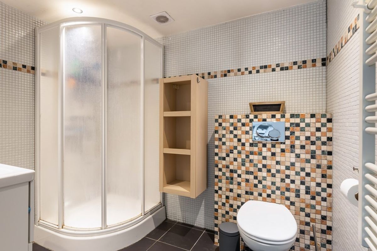 Op de begane grond bevindt zich daarnaast een praktische bijkeuken met extra bergruimte, evenals een moderne badkamer voorzien van een inloopdouche, wastafel en toilet.