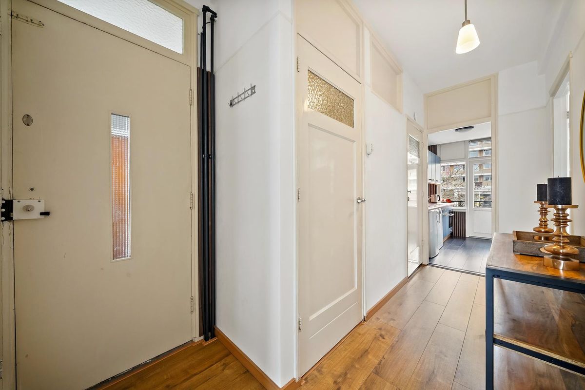 Afgesloten portiek met bellentableau en brievenbussen, trappenhuis en privé berging in de onderbouw.