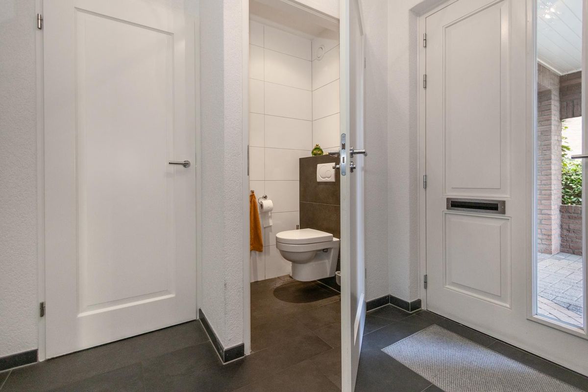 Entree is in de hal aan de zijgevel gesitueerd, hieraan zijn gelegen de trap, deur naar woonkamer, meterkast en de toiletruimte. Meterkast is modern uitgevoerd en v.v. glasvezel.