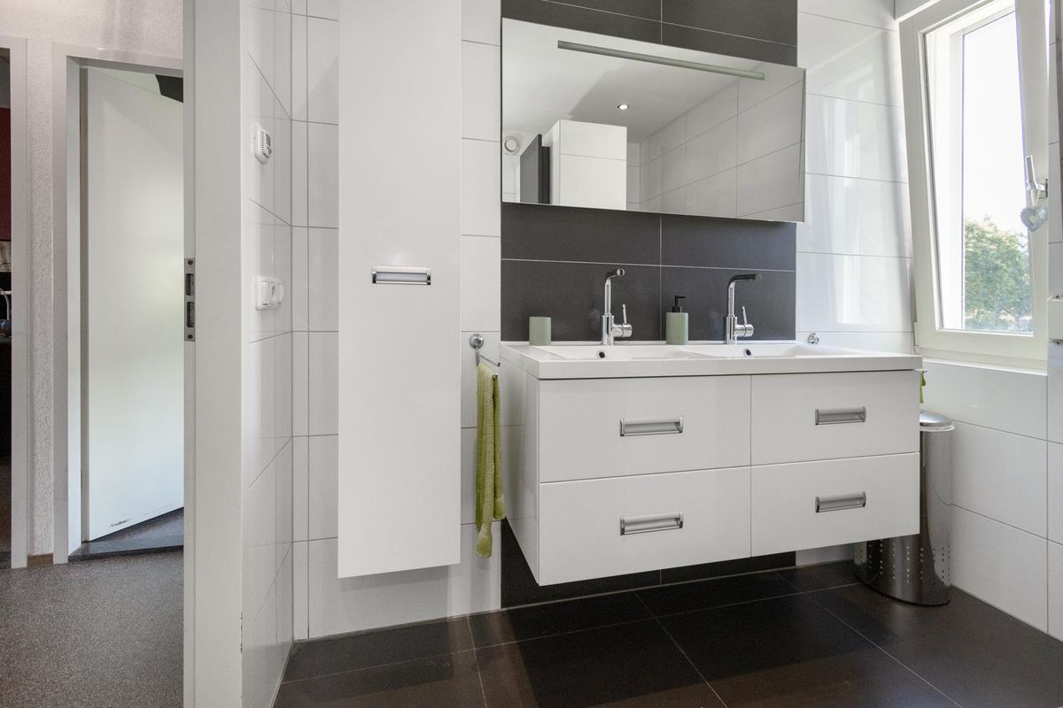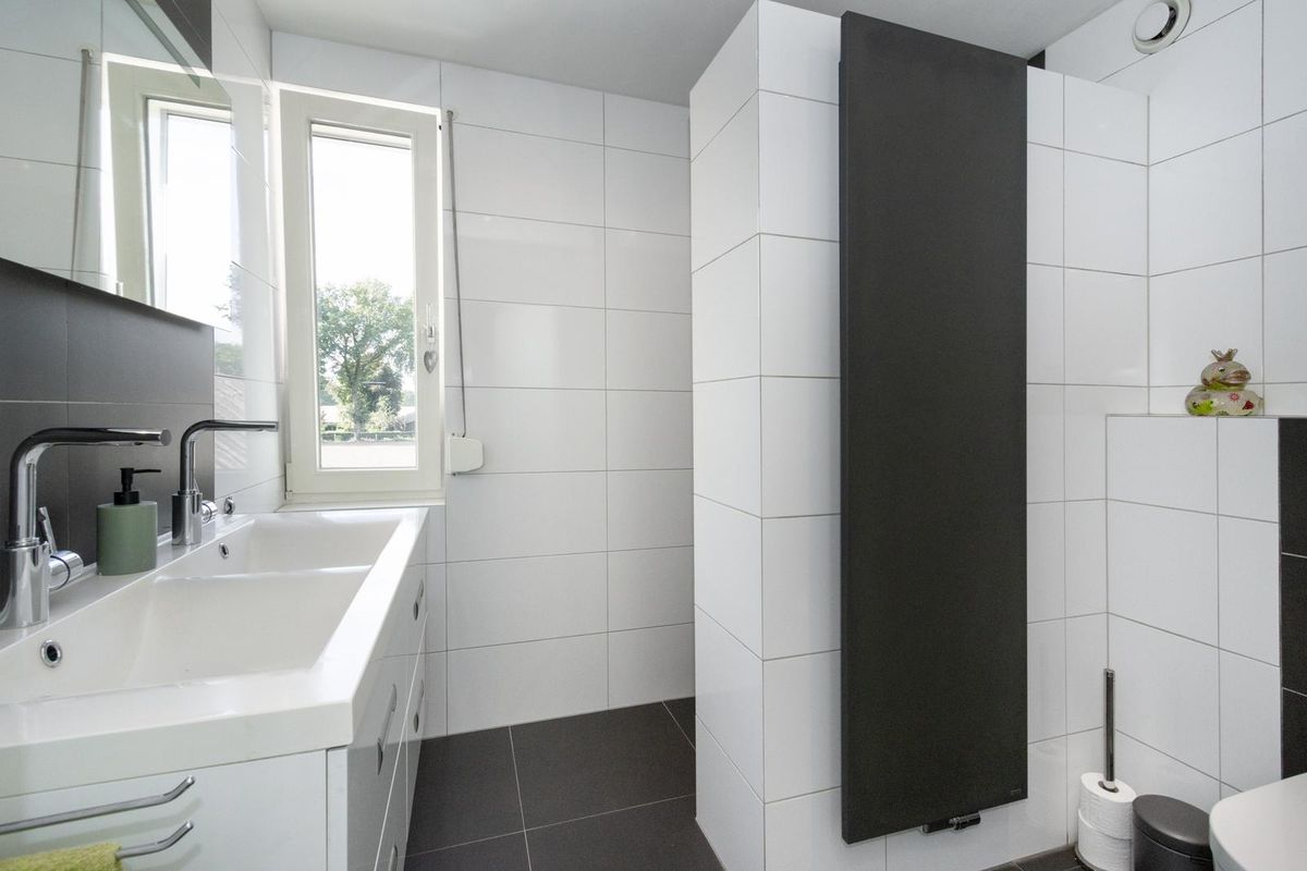 De badkamer is gemoderniseerd en uitgerust met een wastafelmeubel met twee wastafels, een fijne inloop-douche en een wandcloset. De badkamer is in mooi en stijlvol tegelwerk uitgevoerd en de douche is v.v. een hand- en regendouche.
