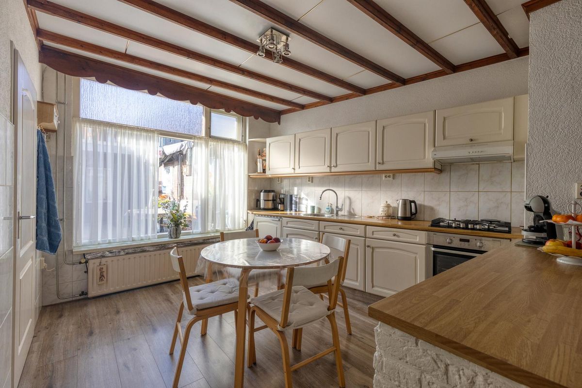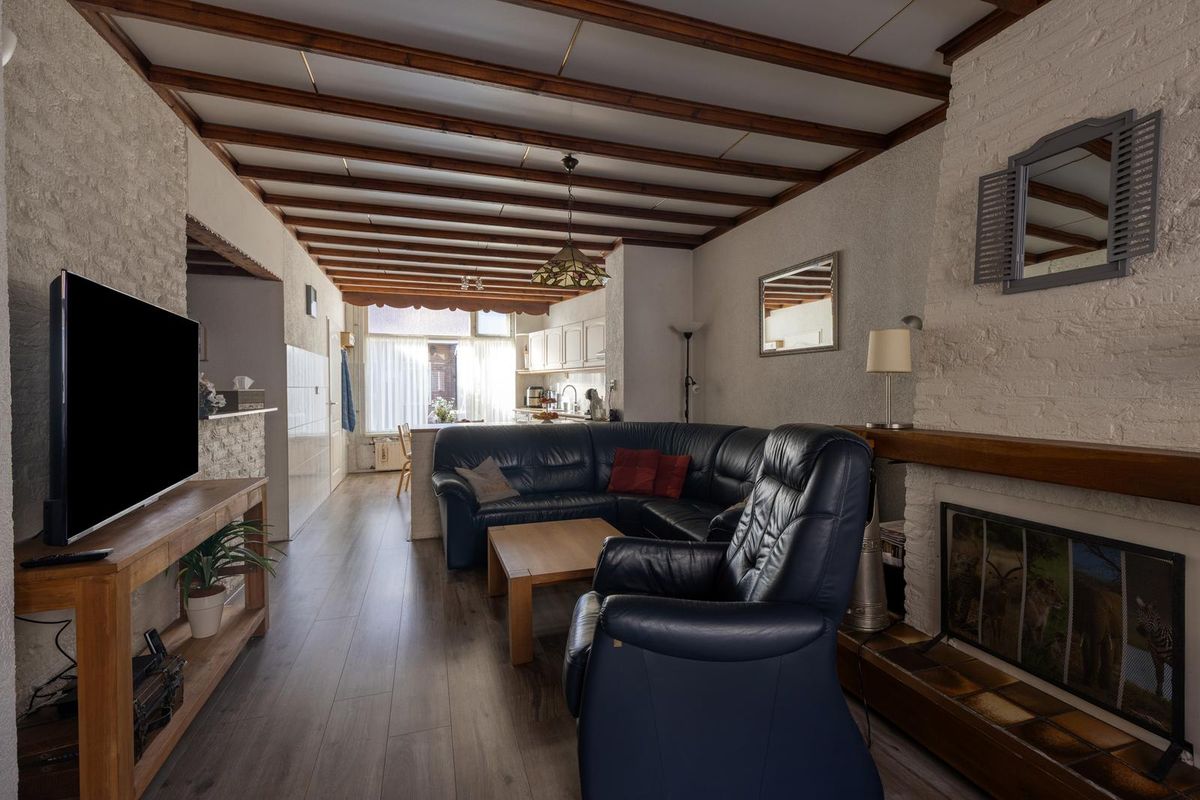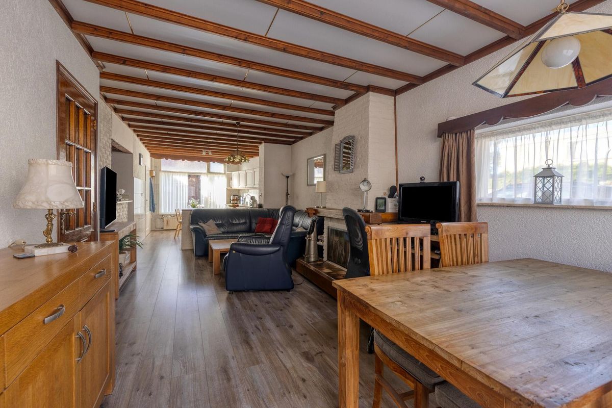 Bij binnenkomst valt direct de royale woonkamer op, die zich uitstrekt over de volledige lengte van de woning. Dankzij de grote ramen aan de voor- en achterzijde geniet je van veel natuurlijk licht en een aangename sfeer. De karakteristieke balkenplafonds en de schouw zorgen voor extra charme. Er is meer dan genoeg ruimte voor een gezellige zithoek én een ruime eethoek.