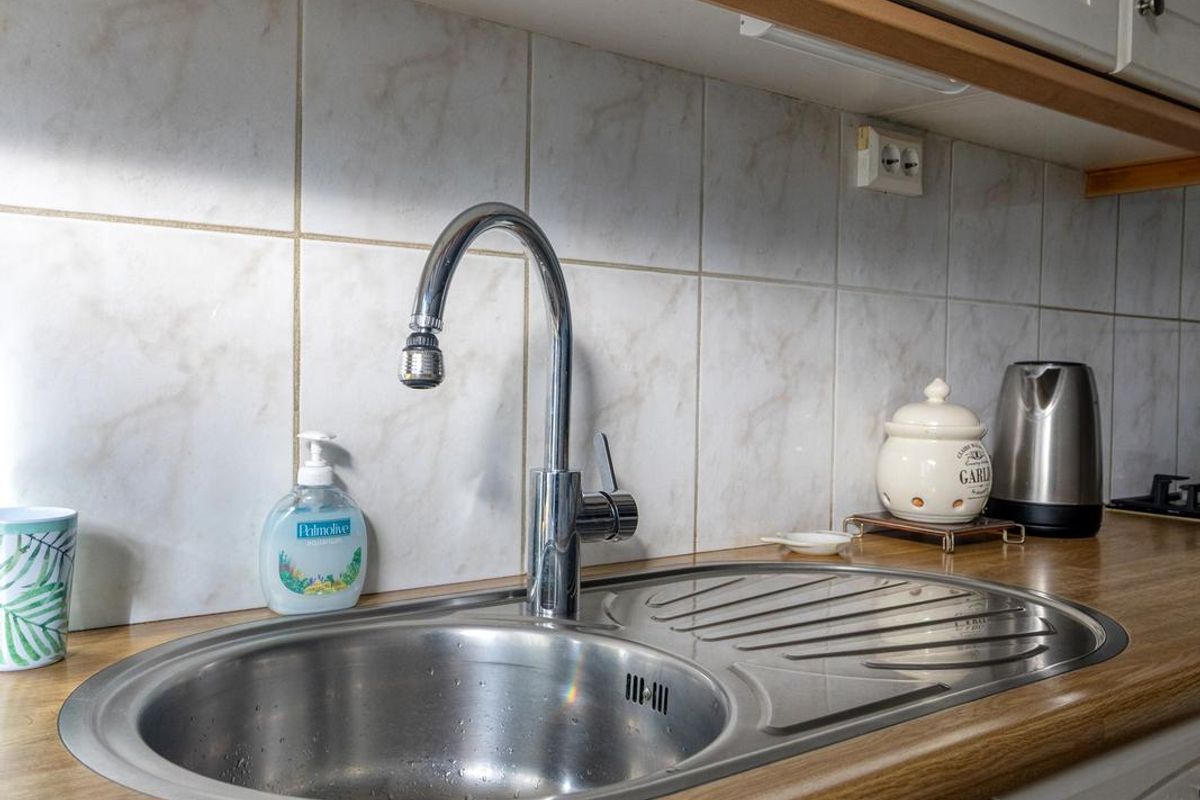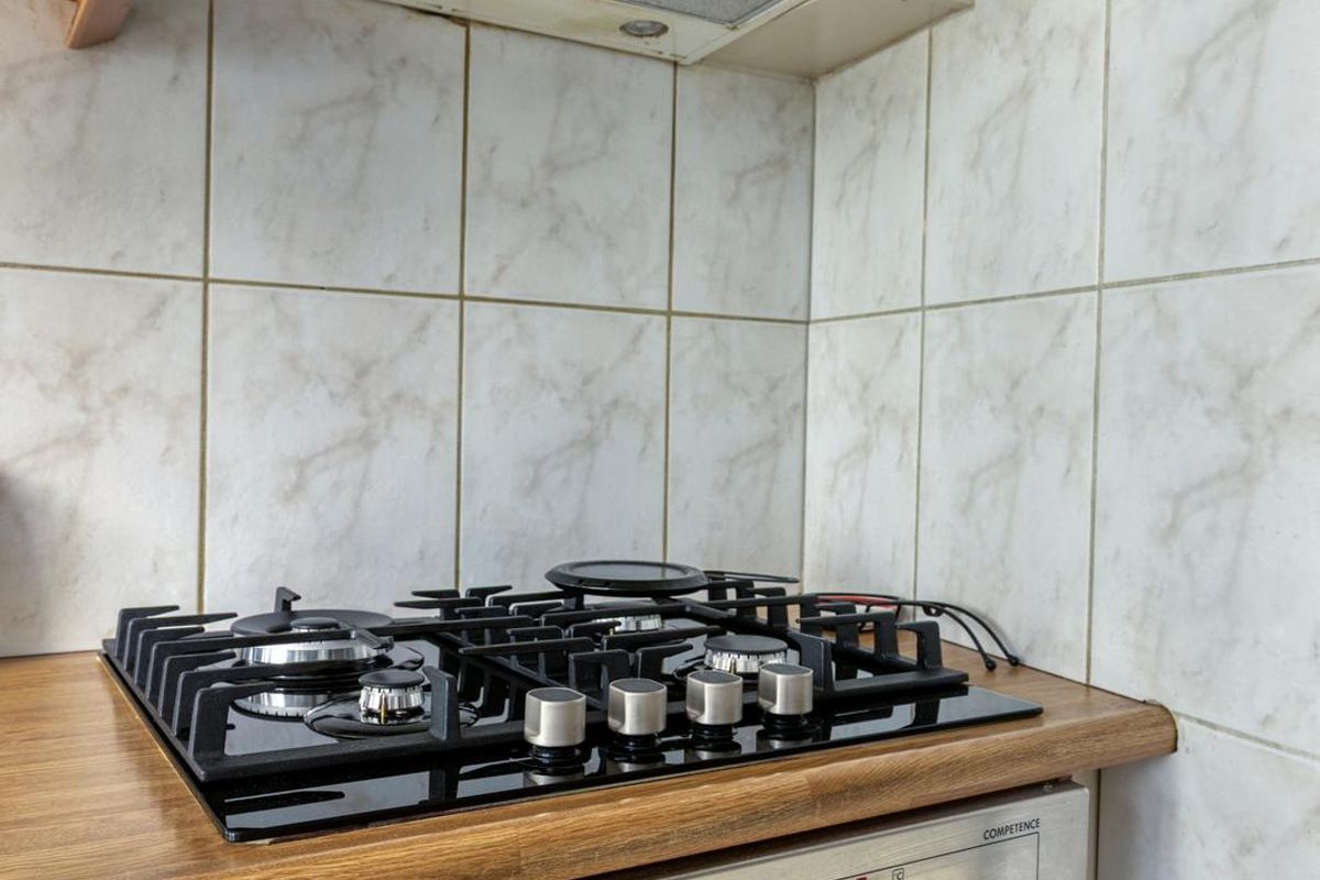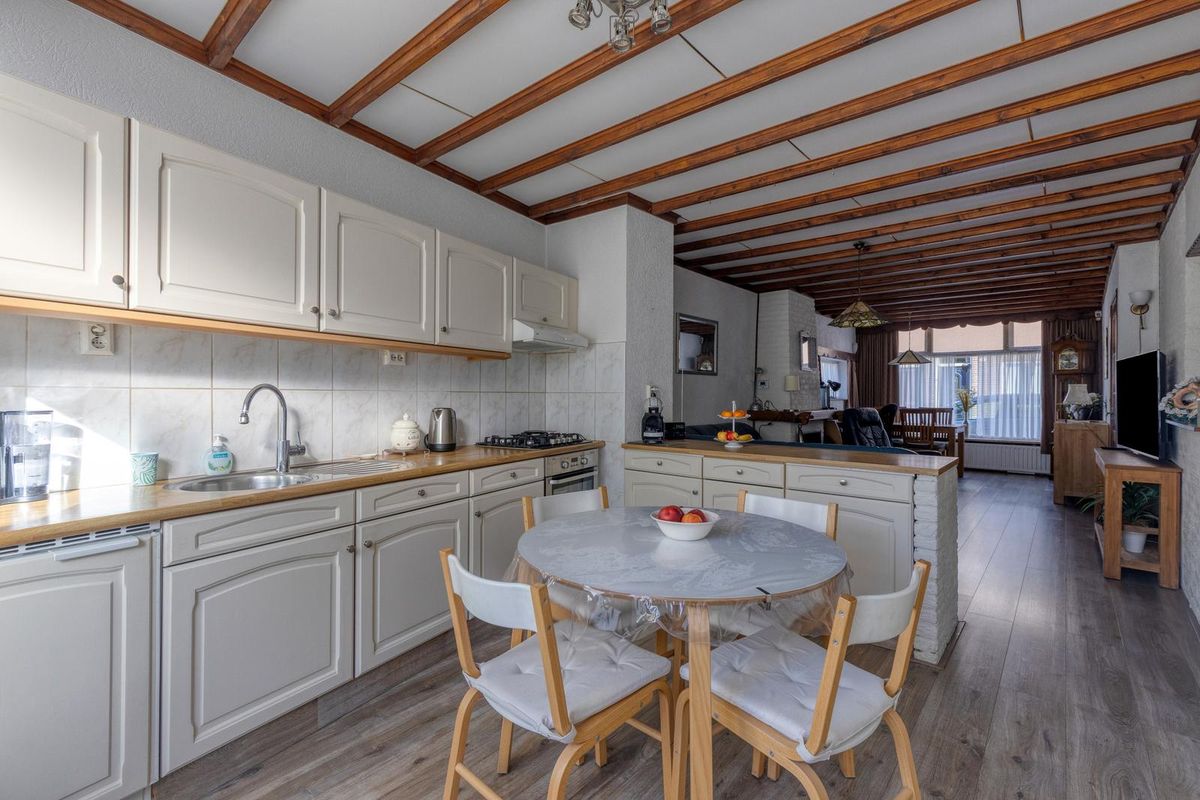 Aan de achterzijde bevindt zich de ruime keuken, die praktisch is ingedeeld en voorzien van diverse inbouwapparatuur en veel kastruimte. Het volgende apparatuur is aanwezig: een gasfornuis, oven, afzuigkap en een koelkast. Ook is er plek voor een ontbijttafel en zorgt het grote raam voor een lichte en prettige plek om te koken en samen te zijn.