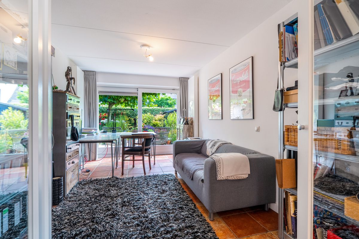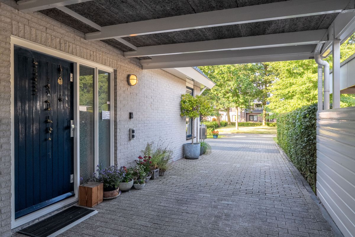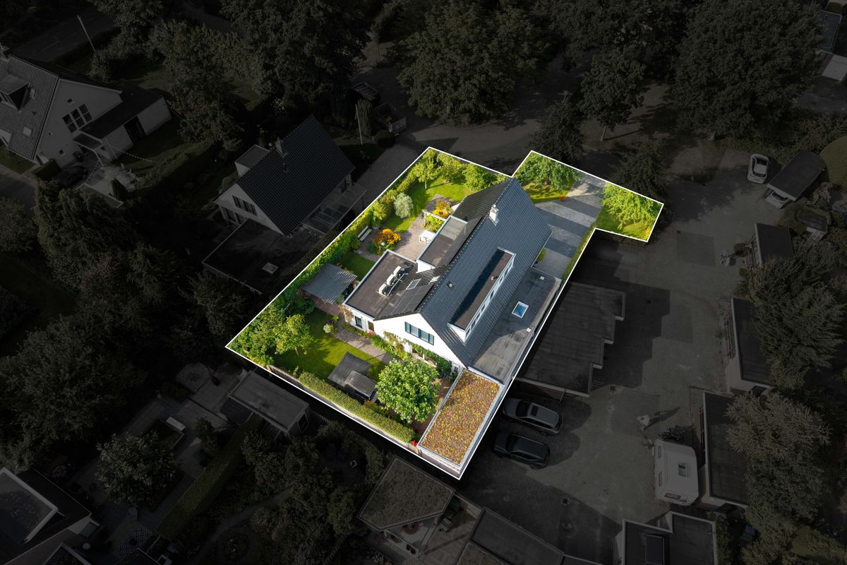 De woning is gebouwd op een royaal perceel van ca. 540 m². De fraai aangelegde tuin rondom biedt volop privacy en is rijk aan groen, met onder andere fruitbomen en een beukenhaag. Een heerlijke plek om te ontspannen of te genieten van het buitenleven. Er is een garage (nu in gebruik als gym), een carport en een ruime oprit met plek voor meerdere auto's.