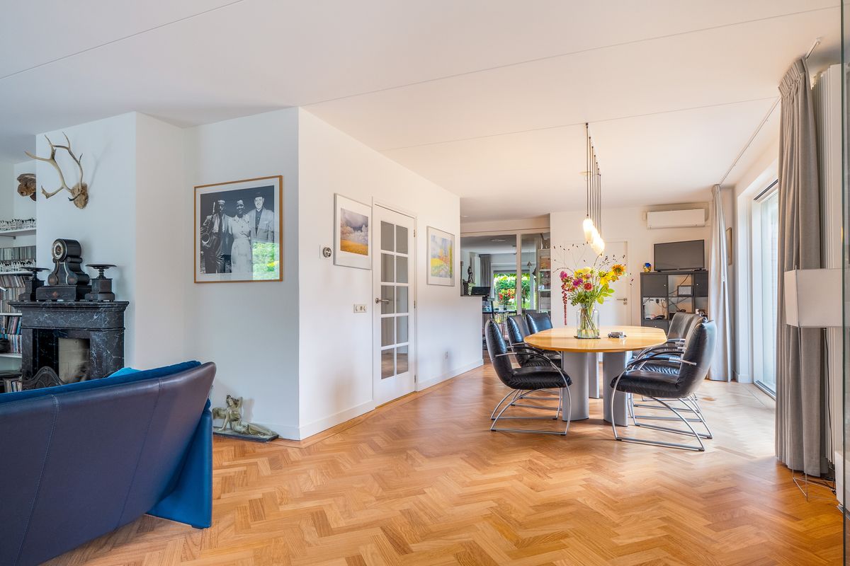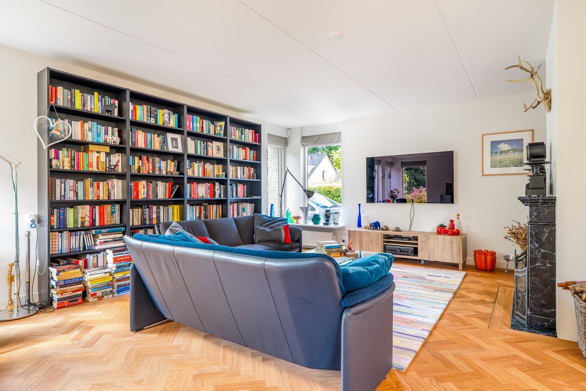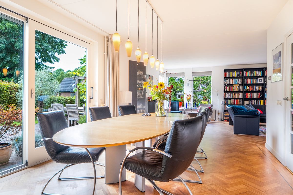 De woning straalt warmte en kwaliteit uit. De ruime woonkamer met een klassieke massief houten visgraatvloer vormt het hart van het huis. Dankzij vele raampartijen geniet je hier van veel natuurlijk licht en een open, luchtige sfeer. De open keuken met inbouwapparatuur sluit aan op het eetgedeelte en de bijkeuken, en vormt zo een praktische en gezellige leefruimte.