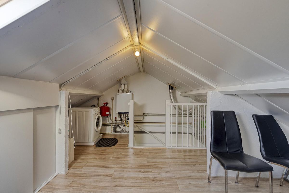 Via een vaste trap bereik je de zolder met geïsoleerd dak, aansluiting voor de wasmachine en extra bergruimte of plek voor een werkhoek.